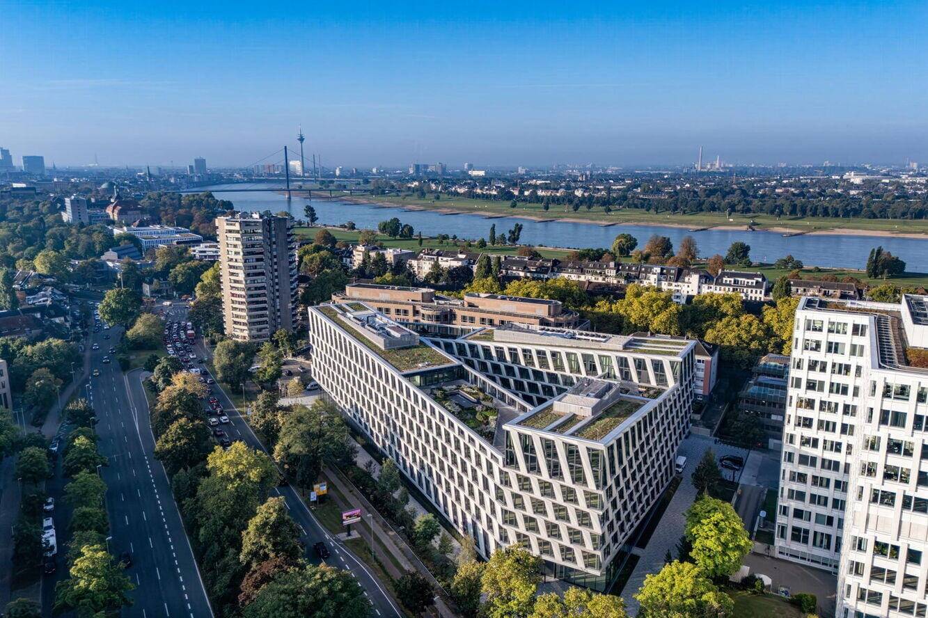 Das Bürogebäude „One Plaza“ orientiert seine flexiblen Arbeitswelten rund um eine grüne Mitte