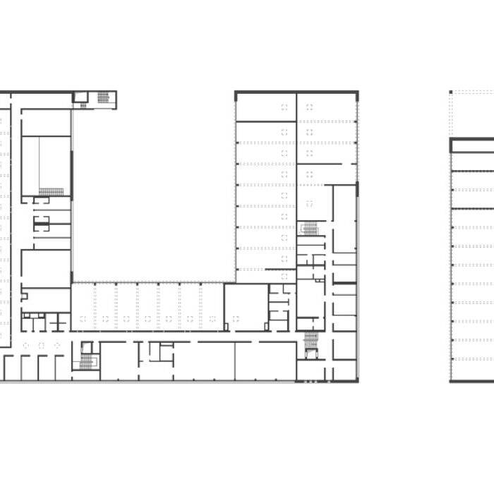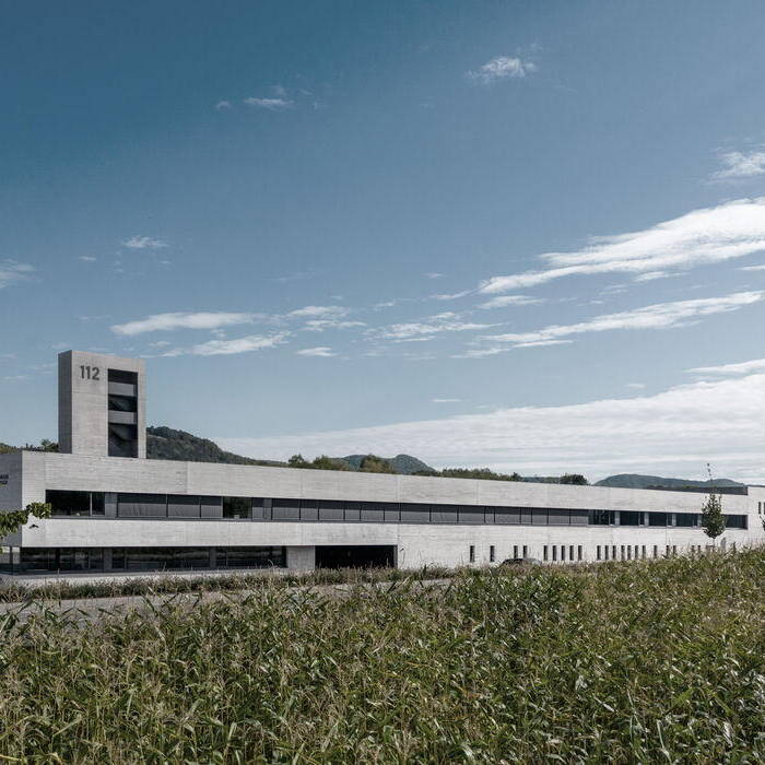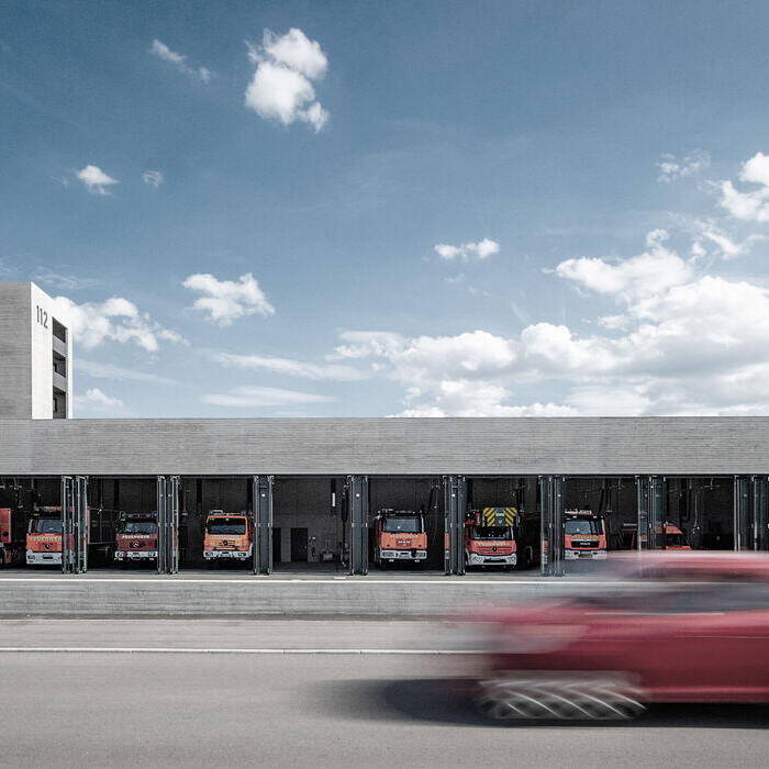 Die von dasch zürn + partner Architekten geplante Anlage besteht aus einem Feuerwehrgebäude und einem Baubetriebshof auf einer Bruttogeschossfläche von 7.165 m². Mit dem Neubau eröffnen sich der Feuerwehr neue Möglichkeiten für die Unterbringung von Material sowie für Übungen und Schulungen – und der Standort gewährleistet die Zehn-Minuten-Hilfsfrist. Das Feuerwehrgebäude nimmt eine Fahrzeughalle für 26 Einsatzwagen, einen Schlauch- und Übungsturm, eine Kfz-Werkstätte und Waschhalle, eine Atemschutzwerkstatt und Funkzentrale sowie Schulungsräume auf. Der Baubetriebshof verfügt über eine Halle für 12 Fahrzeuge sowie eine Schreiner- und eine Schlosserwerkstatt. Initiiert hat die Zusammenlegung an einem Standort der Bauhof, dessen bisherige Räumlichkeiten sanierungsbedürftig waren. Synergieeffekte ergeben sich durch gemeinsam genutzte Räume an den Schnittstellen zwischen Feuerwehr und Bauhof. Dazu gehören sowohl die Waschhalle als auch die Kfz-Werkstatt, ein Besprechungs- und ein Schulungsraum.