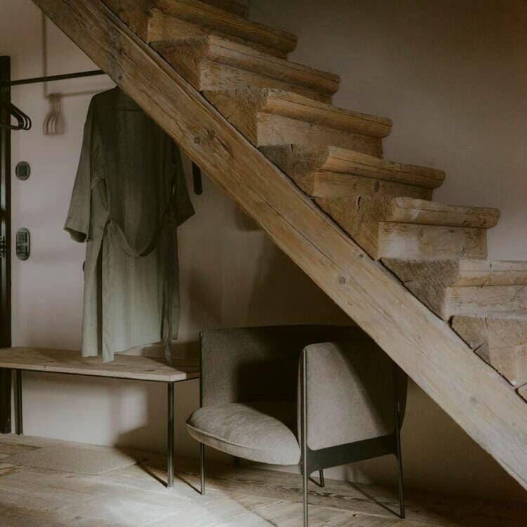 Bruchsteinwände, Fachwerk und alte Holzbalken treffen auf geschwärzten Stahl, Glas und Messing – das kürzlich transformierte Hotel ist geprägt von Materialien, die den Kontrast suchen und zugleich Harmonie erzeugen. Schon beim Betreten zeigt sich die gelungene Transformation: Die Rezeption präsentiert sich als streng kubische Theke aus dunkel patiniertem Cortenstahl, positioniert vor rauem Naturstein. Wer hier nächtigt, taucht ein in den Dialog zwischen Alt und Neu und fühlt sich zugleich mittendrin in einem architektonischen Meisterwerk, das der Münchner Architekt Markus Uhrig gemeinsam mit dem Inhaber Christoph von Bothmer entworfen hat. Dieser hatte die Vision, das alte Gasthaus „Die Krone“ in ein Boutique-Hotel der besonderen Art zu verwandeln, bei dem das Denkmal wertgeschätzt wird. So blieb das Alte alt, wurde aber radikal mit modernen, puristischen Elementen ergänzt. Über mehr als drei Jahre hinweg wurde das historische Kleinod sorgfältig saniert – zusammen mit dem benachbarten ehemaligen Wohn- und Geschäftshaus „Oberböhler“ und einem weiteren Wohnhaus. Dem Ensemble wurde ein neuer Anbau zugeordnet, der das Bild der alten Kronen-Scheune aufgreift, die einst am selben Ort gestanden hatte. Die 29 Zimmer und Suiten sind individuell gestaltet und folgen keiner uniformen Linie, sondern einer Haltung: Niedrige Decken, sichtbare Dachbinder und historische Nischen blieben erhalten, während offene Raumkonzepte Bad, Wohn- und Schlafbereich fließend miteinander verbinden. Besonders eindrucksvoll ist die Dach-Suite, deren Zugang über eine Dachluke führt und in deren Galerie eine freistehende Badewanne unter den alten Sparren thront. Die Spa-Suite spannt den Bogen zwischen Entspannung und Architektur, mit einer privaten Sauna über zwei Ebenen. Interessant ist auch Zimmer 313, das blaue Zimmer. Es verdankt seinen Namen der aquamarinblauen Farbe, die an den alten Steinwänden zum Vorschein kam – einst kostbarer als Gold und bis heute erstaunlich gut erhalten. Im selben Stockwerk wurden alte Deckenbemalungen entdeckt und hervorgehoben. Der Täfersaal mit historischem Dielenboden und großen Sprossenfenstern dient als Ort für Events und Tagungen. Über einen neuen, spektakulär goldfarben ausgekleideten Gang erreicht man den alten Gewölbekeller mit einer atmosphärischen Bar. Für Kulinarik-Fans halten die Restaurants kreative Gerichte bereit – in der „Agatha“ gibt es internationale Köstlichkeiten und im „Zum Hecht“ wird italo-badische Kochkunst von Chefkoch Robert Müller serviert. Für Aktive steht ein Fitnessraum mit modernen Geräten bereit. Und wer draußen Neues entdecken möchte, erkundet die Gegend, vom Naturparadies Bodensee über das als „Schwäbischer Grand Canyon“ bezeichnete Donautal bis zum Schwarzwald mit seinen mystischen Wäldern, Schluchten, Seen und Hügeln.