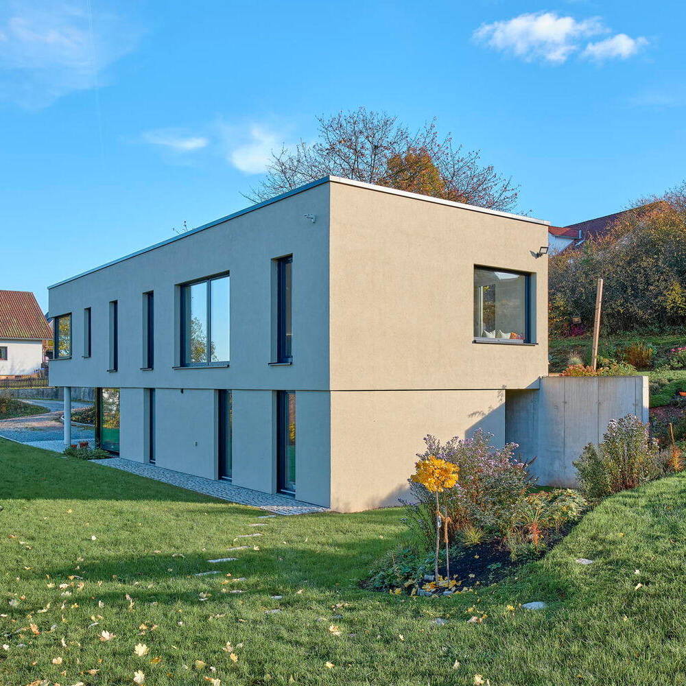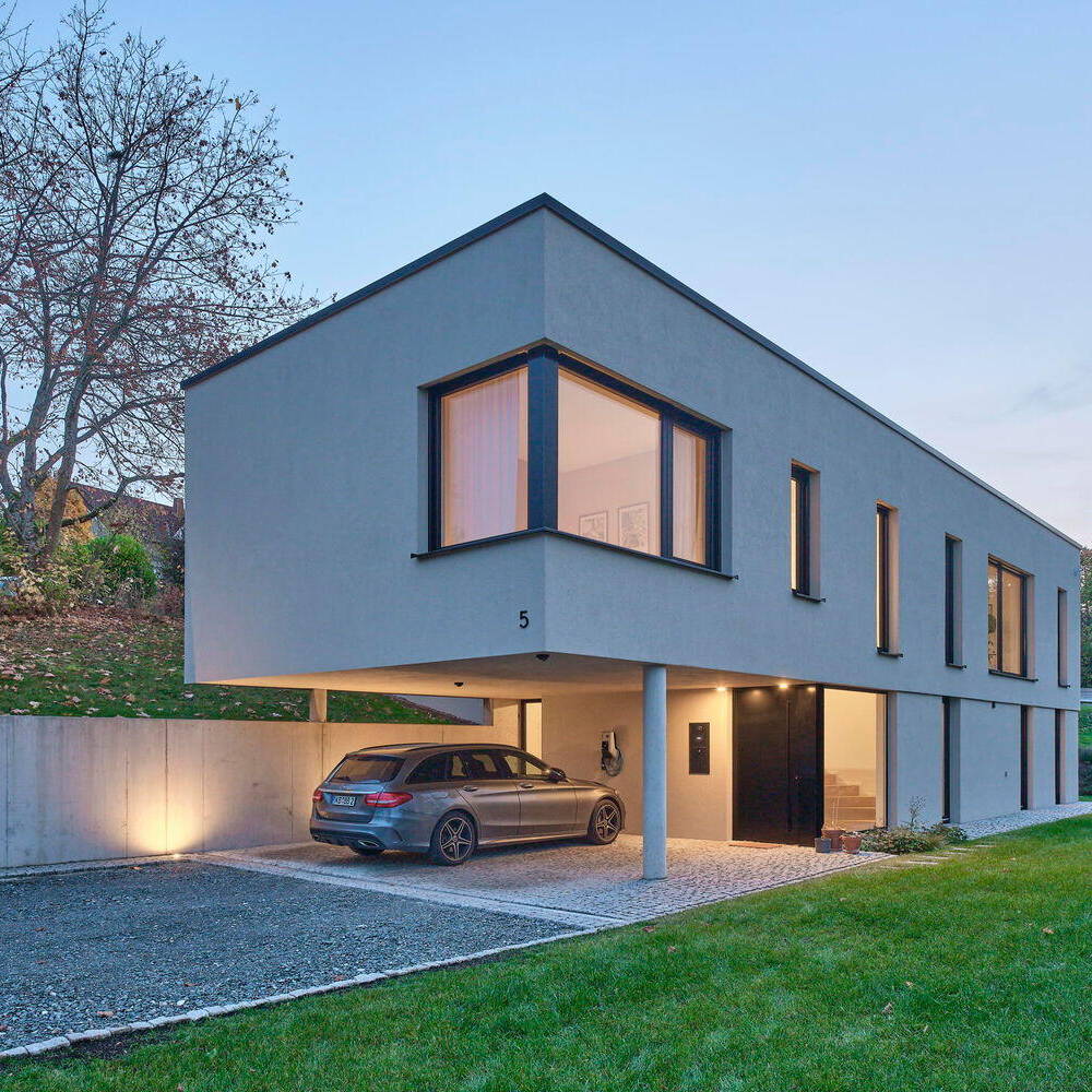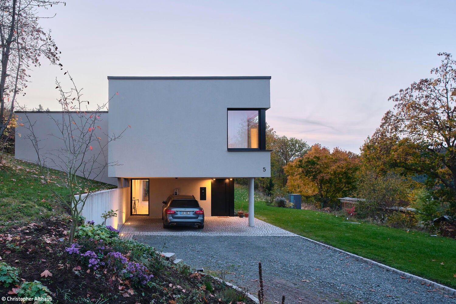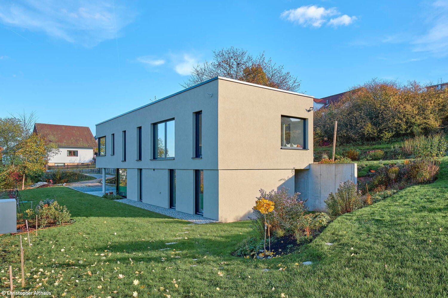 Ein Haus, das die Landschaft versteht. Unter diesem Leitmotiv schufen Althaus Architekten ein Einfamilienhaus, das Reduktion, Klarheit und ökologische Verantwortung vereint. Das Gebäude steht am Rande eines 2.400 m² großen Hanggrundstücks – ein Ort, an dem Licht, Topografie und Aussicht ein charakteristisches Spannungsfeld bilden.