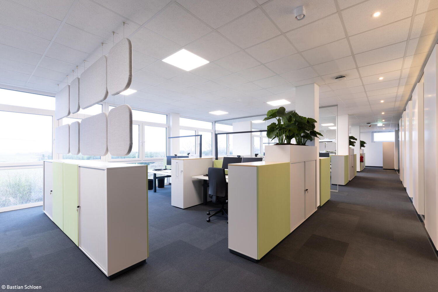 Das Gebäude wirkt zugleich hell und offen. Prägend für das Raumgefühl sind warmes Buchenholz und das Tageslicht, das durch die großzügigen Glastüren, Fenster und Oberlichtbänder fällt. Farb- und Materialgestaltung halten sich dagegen bewusst zurück. Der Kindergarten verfolgt ein teiloffenes Konzept, auf das die Architektur mit einer flexibel bespielbaren Raumstruktur antwortet: Die Kinder sind festen Gruppen zugeteilt, sie können aber im Tagesverlauf frei entscheiden, wo und mit wem sie spielen und welche Angebote sie nutzen möchten. Die Gruppenräume wandeln sich dabei zu Themenräumen. Ihnen gegenüberliegende, offene Umkleidebereiche sowie kleinere, introvertierte Nebenräume ergänzen das Raumprogramm.