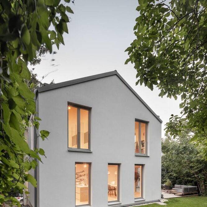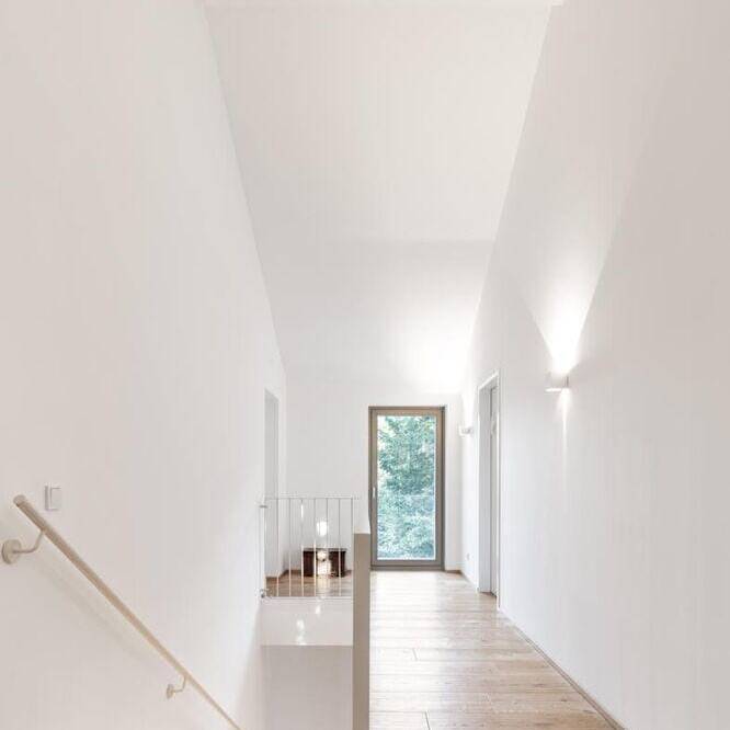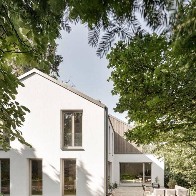 Der Umbau dieses Wohnhauses zeigt beispielhaft, wie sich ein räumlich und funktional problematischer Bestand aus dem Jahre 1975 in eine zeitgemäße, offene Wohnstruktur verwandeln lässt. Ursprünglich prägten ein niedriger, dunkler Eingangsbereich, ein ungünstig platziertes Treppenhaus am Rand, kleinteilige Innenräume und eine unbefriedigende Verbindung zum Garten das Bild. Auch das Obergeschoss bot kaum qualitätsvolle Räume – typische Herausforderungen eines 1970er-Jahre-Baus.