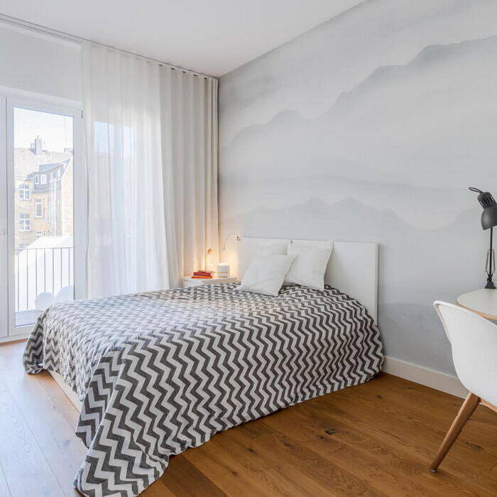 „Ich möchte meiner Wohnung durch kleine Umgestaltungen und gekonnte Eingriffe ,Seele geben‘ – vorwiegend mit Tapeten und Farben. Im Bad soll Dschungel als Motto einfließen.“ So hieß es in der Anfrage der Auftraggeberin beim Erstkontakt an das Kölner Büro Raumkleid. Der Innenarchitektin Anke Preywisch gelang es, mit gezielten Veränderungen und präzisen Maßnahmen die Wohnräume deutlich aufzuwerten.