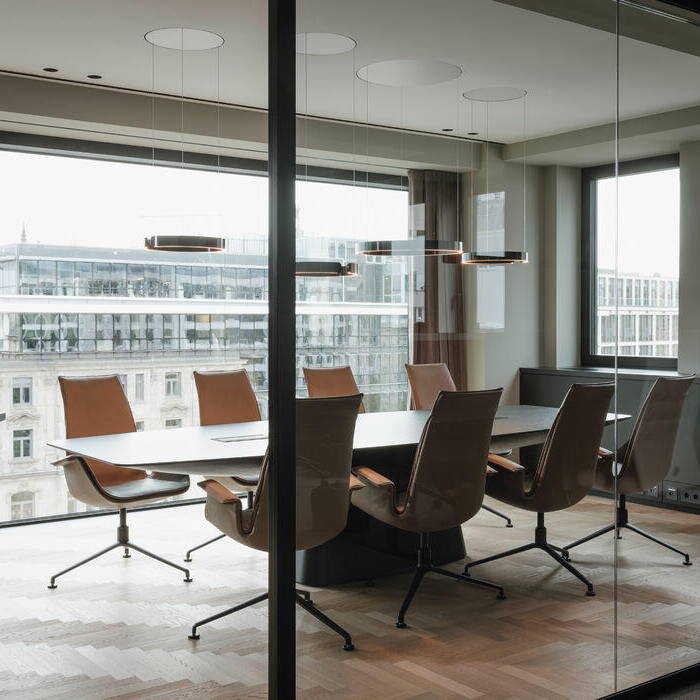 In wohl keinem anderen Land prägt ein solch künstlerischer Anspruch die Gestaltung von Design und Möbeln wie in „Bella Italia“. Und die Designhauptstadt ist Milano. Ein Büro mit „Mailänder Look“ wünschten sich die Auftraggeber des Frankfurter Büros schöne räume architektur innenarchitektur: stilvoll, elegant und zeitlos. Da die Büroräume in zwei aufgestockten Geschossen eines Bestandsgebäudes liegen, haben sich in der Planungsphase viele Wände als außerwinklig herausgestellt – wie auch beim Bestandsbau. Um das auszugleichen, mussten die Innenarchitekten im Ausbau und beim Bodenbelag etwas „spielen“.