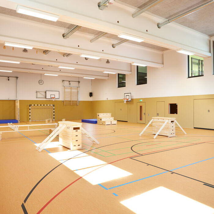 Eine Grundschule mit Sporthalle verbindet kommunikative Lern- und Außenräume