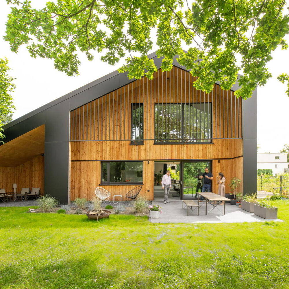 Als Langhaus konzipiertes Wohnhaus mit Satteldach setzt auf maximale Recycelbarkeit