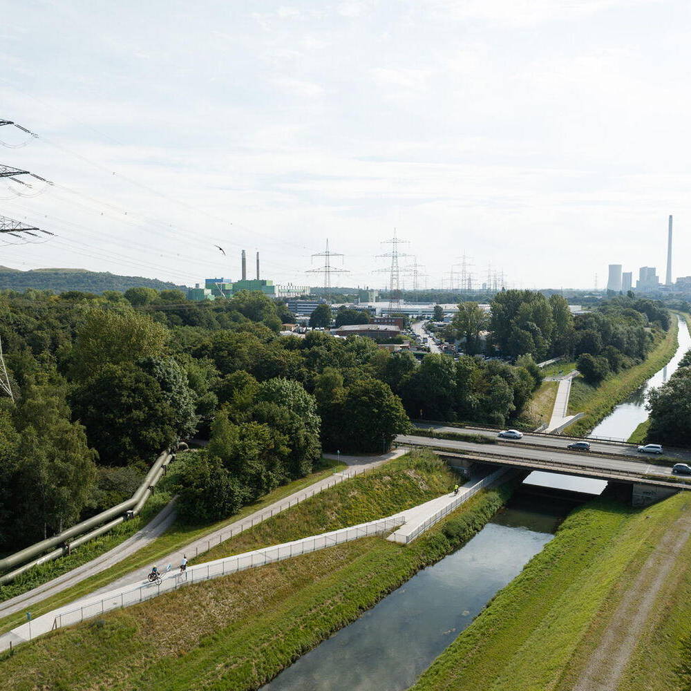 Auch wenn die Emscher, die einst als „Köttelbecke“ des Reviers galt, heute wieder ein sauberer Fluss ist, so ist der Emscherumbau noch lange nicht abgeschlossen. Im Gegenteil: Die ökologische Aufwertung ist in vollem Gang und schafft neue Möglichkeiten, Ufer und angrenzende Stadtlandschaften in zukunftsfähige und erlebbare Räume umzugestalten. Daran wirken auch DTP Landschaftsarchitekten aus Essen mit, die im Auftrag der Emschergenossenschaft die Emscher-Promenade von Castrop-Rauxel über Recklinghausen und Herne nach Herten gestalten.