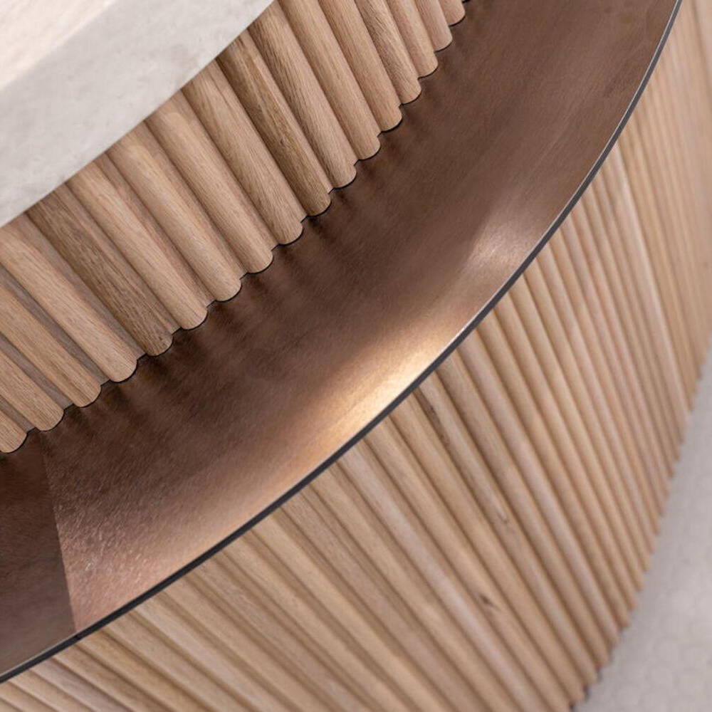 Die Materialauswahl folgt einem bewussten Kontrast: Warme, natürliche Materialien wie Eichenholz stehen im Spannungsverhältnis zu funktionalen Oberflächen wie dem Kautschukboden, der eine kühle Note einbringt. Dieses Zusammenspiel sorgt für ein harmonisches Gesamtbild und unterstützt gleichzeitig die zielgerichtete Gestaltung der Räume unter Berücksichtigung der medizinischen Anforderungen. Das Ergebnis sind Räume mit Tiefe und wertigen Materialien. Das unaufdringliche Design schafft eine ansprechende und nutzungsorientierte Praxisumgebung, die den Menschen in den Mittelpunkt stellt.