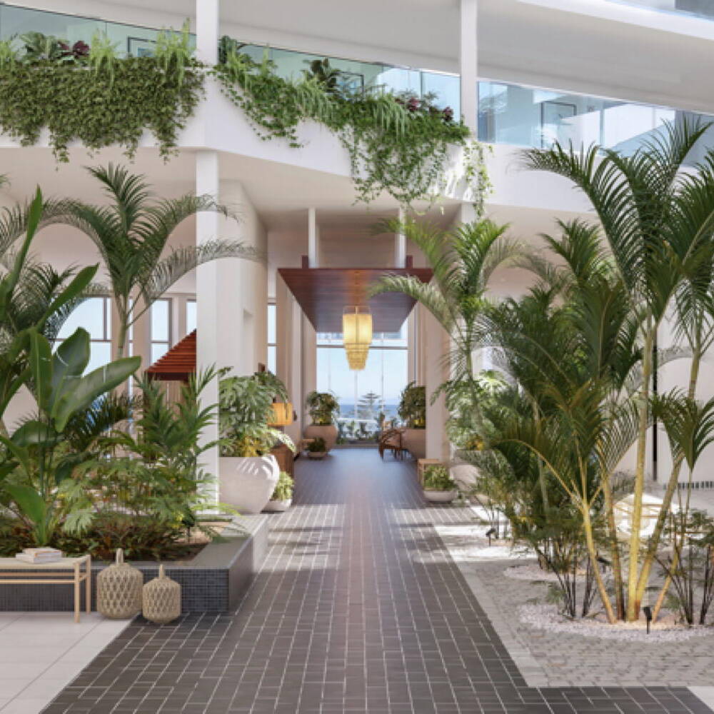Fuerteventura ist eigentlich als die „Insel des Winds“ der sonnigen Kanaren bekannt. Doch am Sotavento Beach an der Costa Calma im Süden zeigt sie sich von einer ganz anderen Seite: Eine windgeschützte Lagune mit flachem, türkisblauem Wasser und weiße Sanddünen lassen beinahe echtes Karibik-Feeling aufkommen. Mittendrin: Das Meliá Paradisus Fuerteventura. Wie eine Oase schmiegt sich das Resort in die Landschaft – umrahmt von Palmen und viel Grün. Erbaut in den 1970ern – damals wurden auch die üppigen tropischen Gärten des Resorts angelegt – hat das Hotel kürzlich ein bemerkenswertes Revival erfahren und macht nun seinem Namen „Paradisus“ alle Ehre: Schon das imposante Entree lässt Urlaubsfeeling aufkommen. Der lichtdurchflutete Bereich, über fünf Stockwerke hoch, präsentiert sich hell, offen und einladend m it Rezeptionstheken und viel Grün. Dazu gibt es eine Bar mit gemütlichen Daybeds und Blick auf das Meer. Wie ein eingerahmtes Gemälde öffnet sich hier der Blick über die verglaste Front zum Strand und die über das türkise Wasser sausenden Wundsurfer mit bunten Segeln – let the vacation begin!