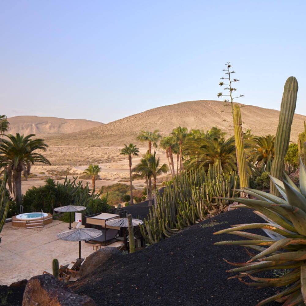 Sehr interessant ist auch das „Destination Inklusive“-Konzept, das die mehrfach als weltweit nachhaltigstes Hotelunternehmen ausgezeichnete spanische Meliá-Gruppe in ihren „Paradisus“-Resorts zelebriert: Alle Häuser holen durch Partnerschaften mit lokalen Künstlern und Zulieferern die regionale Kultur ins Blickfeld der Gäste – sei es über besondere Food-Angebote vom lokalen Ziegenkäse über Workshops mit der lokalen Kunsthandwerkerin Maria Hernaàndez, die Gästen das jahrhundertealte Flechten von Palmwedeln näherbringt. Ebenfalls besonders ist die enge Zusammenarbeit mit lokalen Künstlerinnen und Kunsthandwerkerinnen, die dem Haus eine authentische, identitätsstiftende Handschrift geben – wie etwa Leticia Arévalo (Arenas Cerámicas): Ihre Keramikarbeiten, inspiriert von traditionellen kanarischen Steinstrukturen, wurden eigens für das Hotel geschaffen und interpretieren historische Bautechniken modern und abstrakt. Das Studio Dot Arch übersetzt organische Formen der Insel in dekorative Designobjekte und der Keramiker Juan Sánchez (Cerámicas Nopal) arbeitet mit lokalem Ton und Glasurexperimenten mit vulkanischen Steinpartikeln. Viele der im Hotel eingesetzten Vasen, Schalen und Wandobjekte stammen aus seiner Werkstatt in La Oliva.