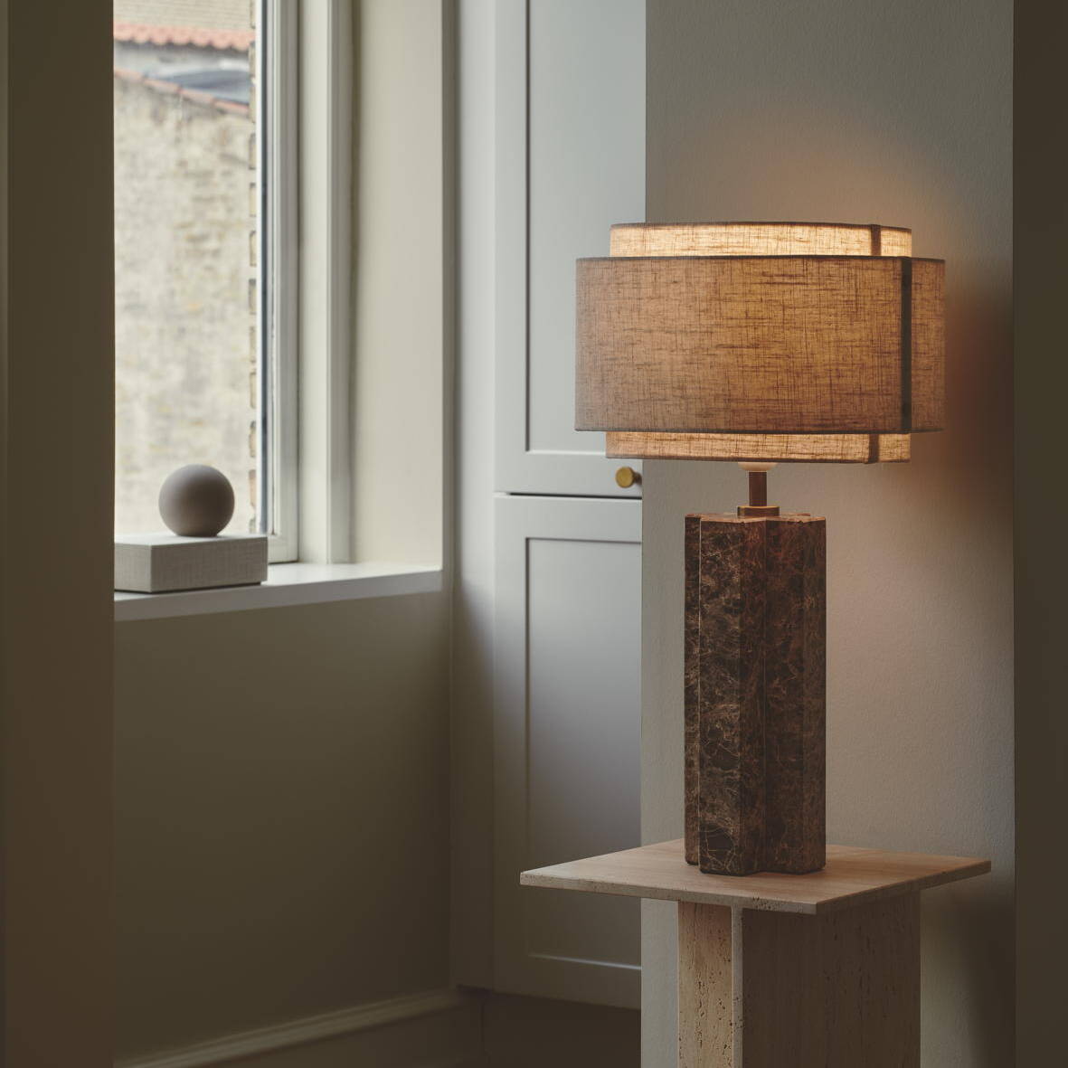 Die Takai Tischleuchte, inspiriert vom architektonischen Brutalismus, zeigt ihr Talent, Materialien wie Marmor, Stoff und Messing zu einem ikonischen Objekt zu verbinden. Ihr schwebender Leuchtenschirm schafft eine warme, fast poetische Atmosphäre – perfekt für Lounges, Hotelzimmer oder wohnliche Office-Zonen. Auch Navone oder Beau spiegeln ihre Haltung wider: Lichtdesign, das relevant ist – emotional wie funktional – und architektonische Konzepte subtil unterstreicht.
