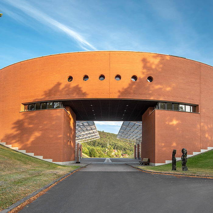 Das von Mario Botta entworfene Firmengebäude von Benkert Bänke ist ein Beispiel für die schöpferische Sprache des weltbekannten Architekten. Botta, geboren 1943 in Mendrisio, im schweizerischen Kanton Tessin und berühmt für seine markanten, geometrischen Formen und die harmonische Integration von Bauwerken in ihre Umgebung, hat hier ein Bauwerk geschaffen, das die architektonische Klarheit und Strenge seiner Handschrift deutlich widerspiegelt.