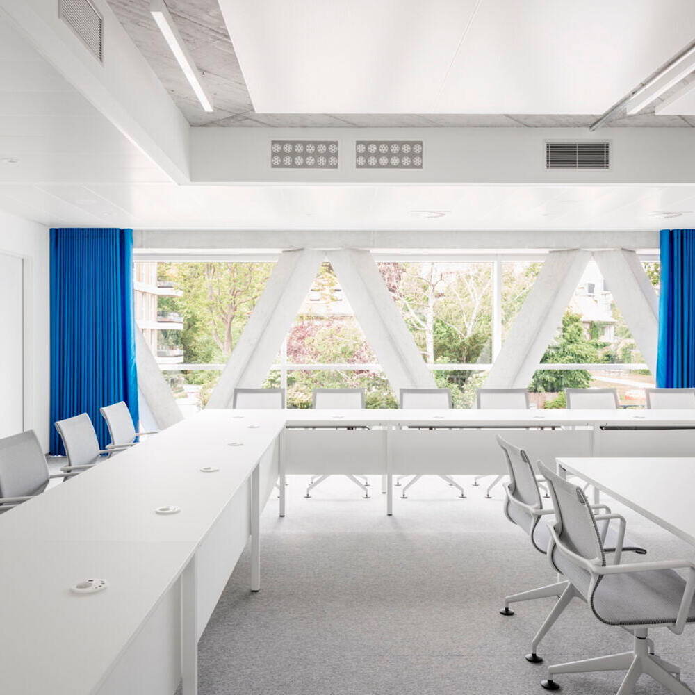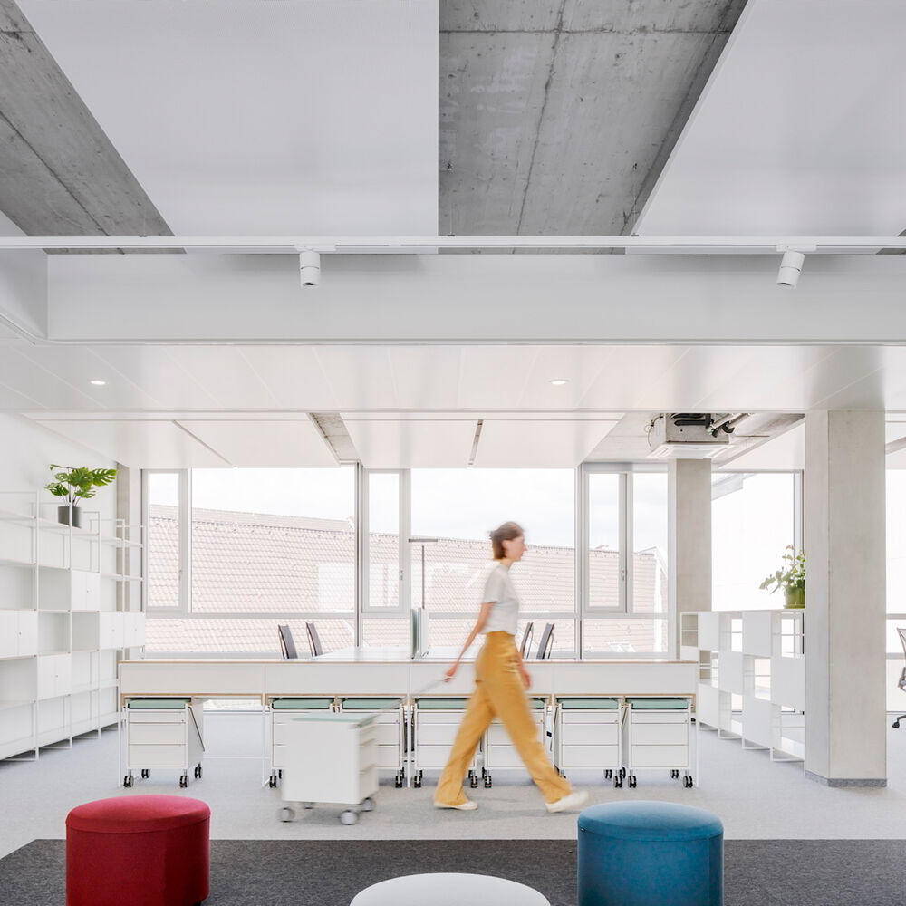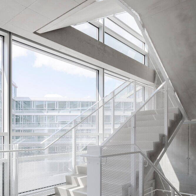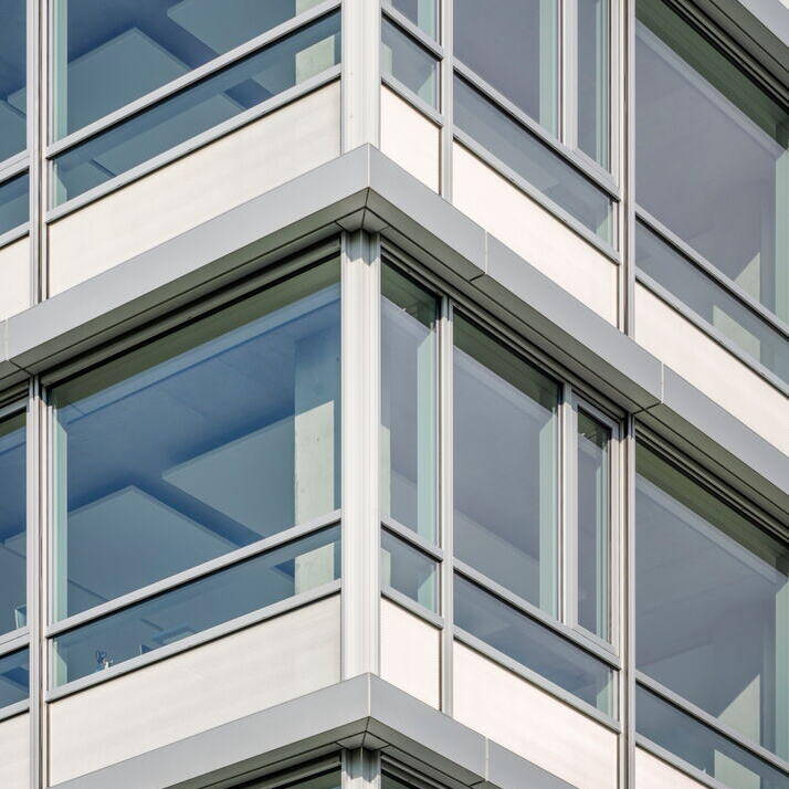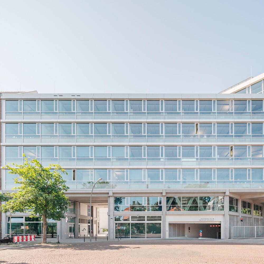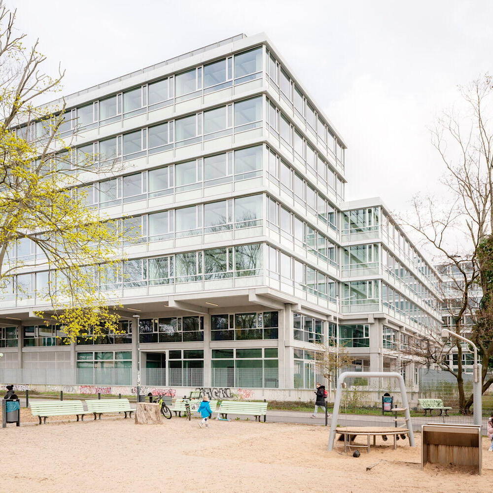 Das Projekt wurde mit dem Nachhaltigkeitssiegel DGNB in Gold ausgezeichnet. Bei der Planung lag der Fokus auf maximaler Flexibilität in der Nutzung sowie technischer Nachrüstbarkeit. Die vorgefertigten Fensterelemente sind auffällig geteilt und haben in der Mitte ein semitransparentes Brüstungsfeld mit einem silbrig schimmernden, zwischen den Glasscheiben eingelassenen Sonnenschutz, der vor Blicken von außen schützt – während man umgekehrt von innen nach außen sehen kann. Diese hellen Alubänder zonieren die Fassade. Ursprünglich war man von einer Vermietung an unterschiedliche Mieter ausgegangen. Daher waren großzügige, offene Flächen für Büronutzer mit unterschiedlichen Anforderungen an die Räume geplant. Während der Bauzeit (von 2019–2023) fand sich jedoch ein einheitlicher Mieter für das gesamte Gebäude: Das Bundesamt für Verbraucherschutz und Lebensmittelsicherheit bezog die Räume, wünschte sich aber eine Mischung aus Zellenbüros und offenen Büroflächen, die gemeinsam mit den Architekten entwickelt wurden.