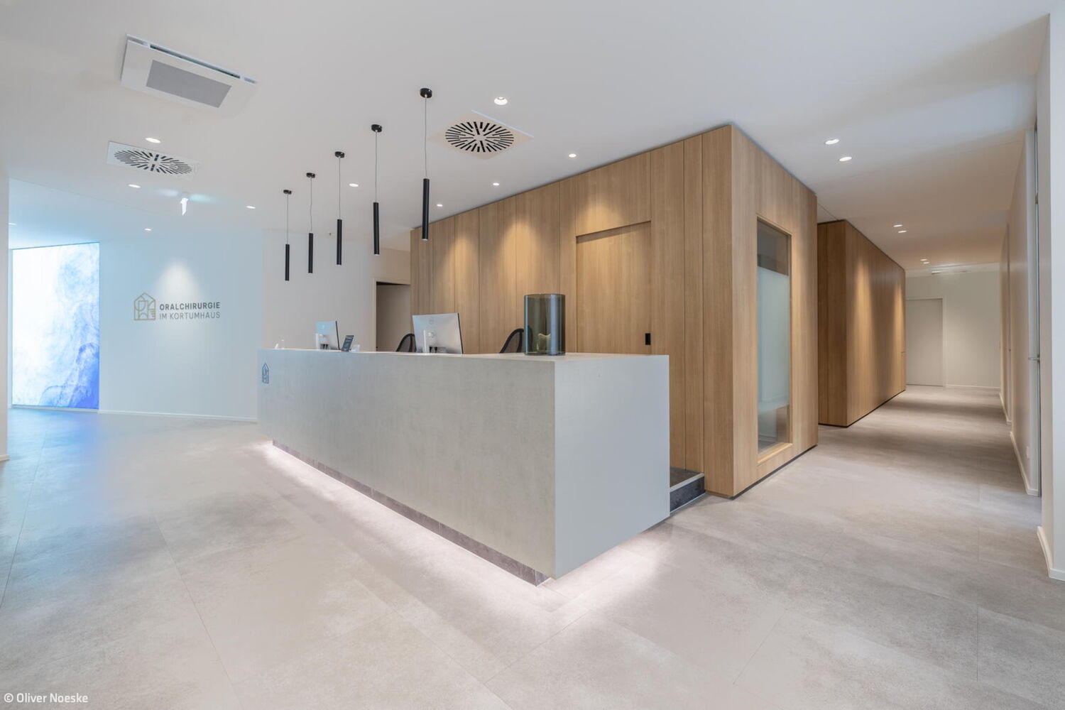 Das Design einer oralchirurgischen Praxis vermittelt Ruhe, Kompetenz und Wärme