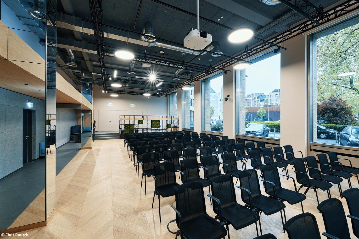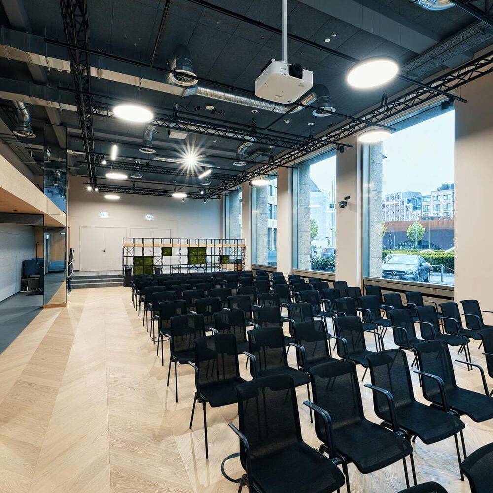 Die elfgeschossige Hochhausscheibe der IHK Düsseldorf, gelegen nahe Berliner Allee und Immermannstraße, prägt seit 1954 die Düsseldorfer City als wichtige Adresse. Bei dem Gebäude, das zuletzt Mitte der 1990er generalsaniert worden war, erfolgte nun im Zuge einer Modernisierung der Lüftungstechnik eine bauliche und technische Erneuerung der Tagungs- und Konferenzbereiche. Dabei verliehen Lindner Architekten aus Düsseldorf sowohl dem Ernst-Schneider-Saal als auch weiteren Konferenz – und Seminarräumen einen zeitgemäßen Wohlfühl-Charakter, der zugleich Raumstrukturen optimiert und mehr flexible Nutzungen ermöglicht.