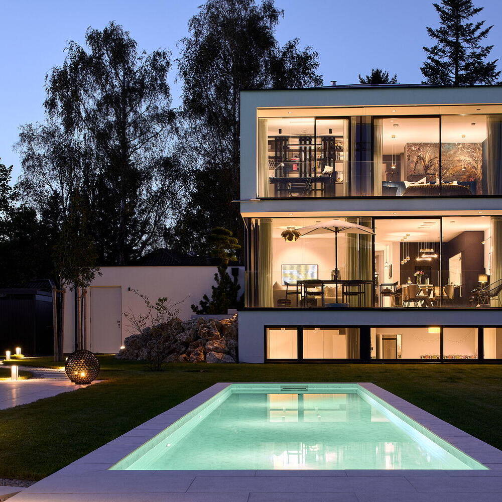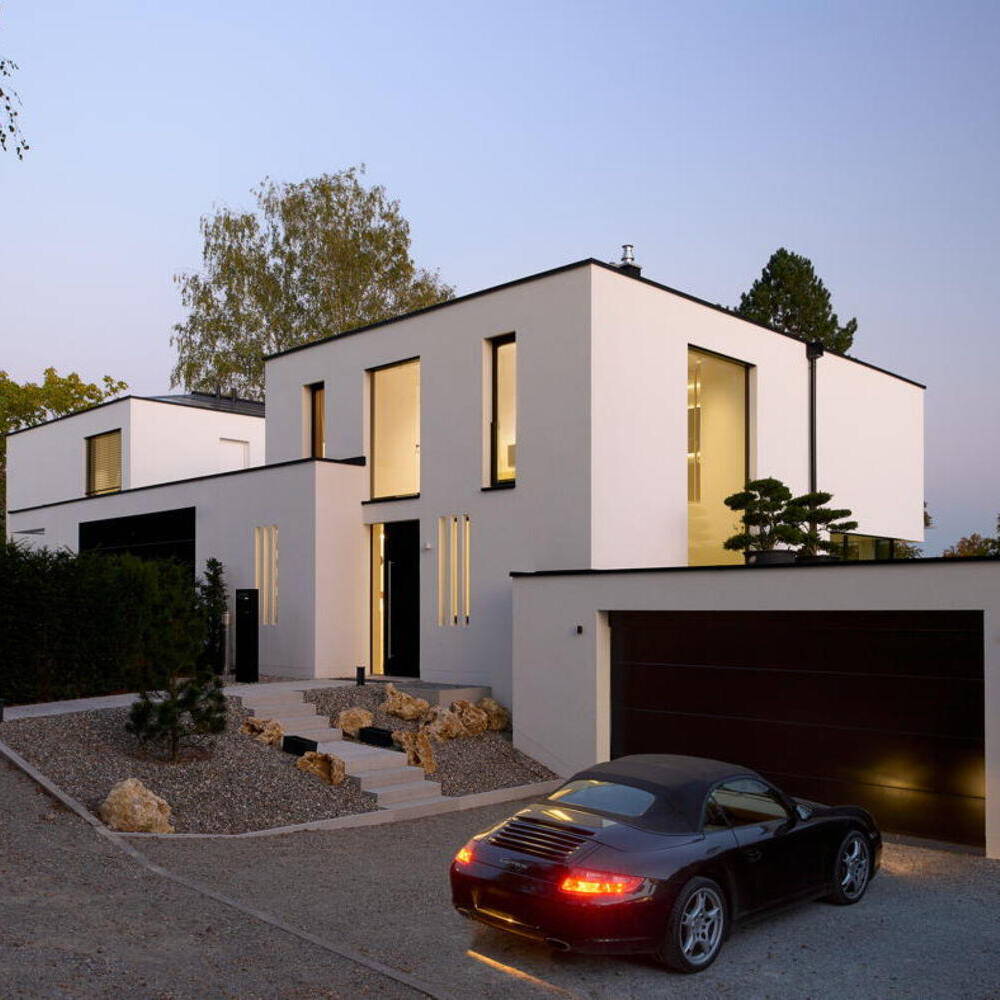 Dieses Projekt verbindet moderne Architektur mit nachhaltigen Materialien und innovativen Technologien. Besonders hervorzuheben ist das zurückgesetzte Zeltdach mit flächenbündiger, nahtlos in die Dachhaut integrierte Photovoltaikanlage, das nicht nur energetische Vorteile bietet, sondern auch eine klare gestalterische Handschrift setzt. Hochwertige Materialien, integrierte Raffstoreanlagen und rahmenlose Verglasungen sorgen für maximalen Wohnkomfort und eine anspruchsvolle Ästhetik. Nachhaltigkeit spielte eine zentrale Rolle. Neben den ökologischen Aspekten bietet das Projekt auch insofern einen Mehrwert, indem es zeigt, wie nachhaltiges Bauen mit anspruchsvoller Architektur harmoniert. Daher erhielten die beiden Gebäude den edlen Namen „Villenensemble”, auch weil sie Ästhetik und Funktionalität verbinden und innovative Energiekonzepte mit einer modernen Formensprache vereinen.