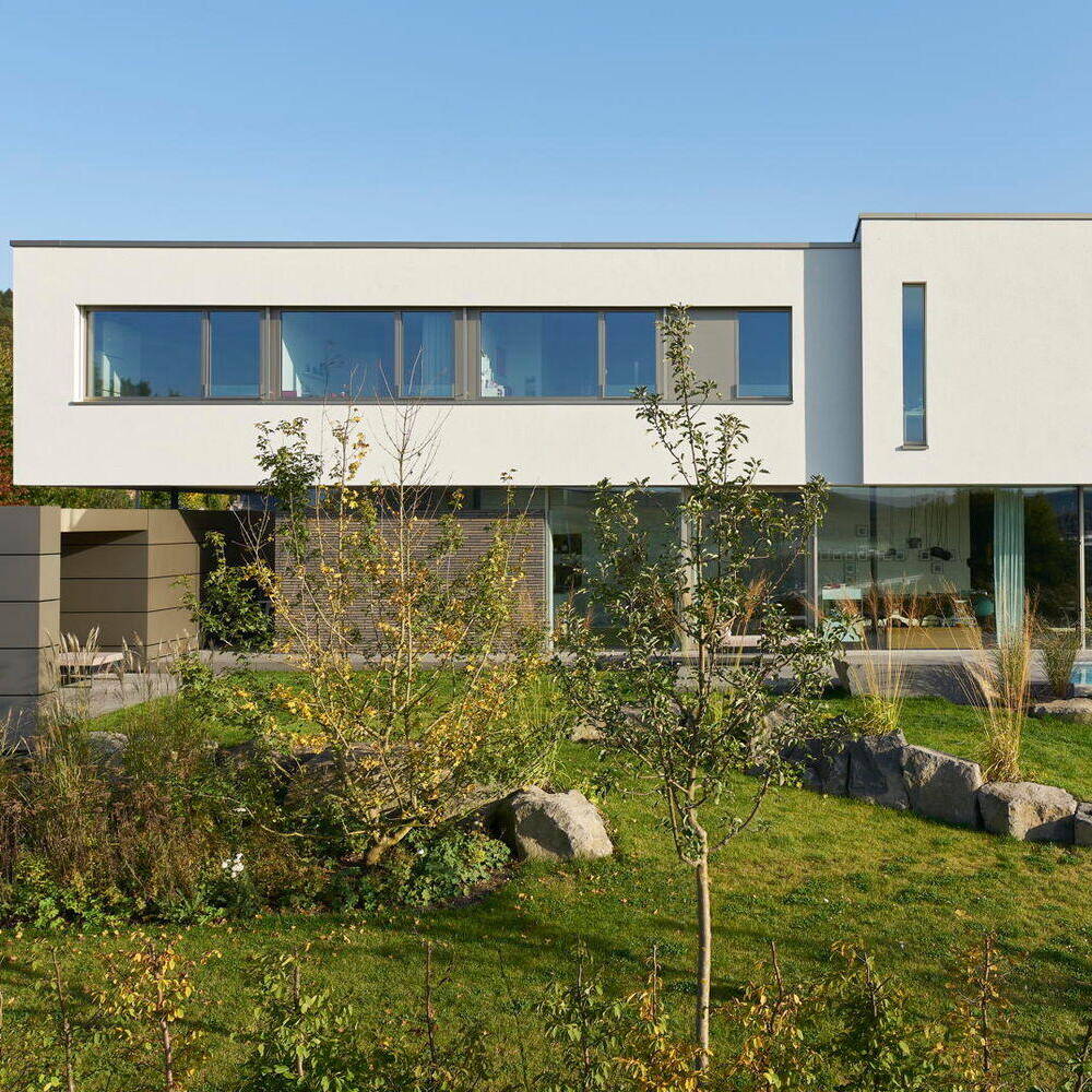 Es gibt Momente im Leben, die neue Räume erfordern. Bei einer heute fünfköpfigen Familie wurde dieser Moment zur Initialzündung für das Projekt „Haus Himmelberg“. „Beim dritten Kind bauen wir neu“ – dieses Versprechen hatte der Architekt Andreas M. Schwickert nämlich seiner Frau gegeben und einige Jahre später ein Haus entworfen, dessen Architektur an die klassische Moderne angelehnt, zugleich aber auch großzügig und durchdacht ist.