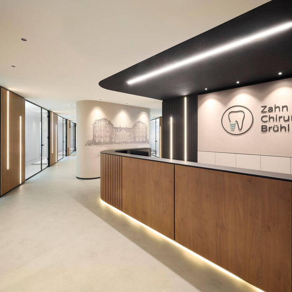 Gerade Arztpraxen müssen Funktionalität mit einer Atmosphäre verbinden, in der sich Patient:innen und Mitarbeiter:innen gleichermaßen wohlfühlen. Die Praxis für Zahnchirurgie Dr. Blume & Dr. Engelke, die aus Platzgründen einen neuen Standort brauchte und auf ein Brühler Einkaufszentrum umsiedelte, folgt genau dieser Philosophie. Mit einer klaren Leitidee, hochwertigen Materialien und intelligenten architektonischen Lösungen wurde ein Ort geplant, in dem die Wünsche des Auftraggebers umgesetzt wurden: eine Praxis mit kurzen Wegen, geschützten Eingriffs- und Aufwachräumen sowie einem großzügigen Empfangs- und Wartebereich. Dabei lag der Fokus auf einer hochwertigen, aber nicht überladenen Gestaltung, die Professionalität und Vertrauen vermittelt. Für die Mitarbeitenden wurde zudem ein atmosphärischer Sozialraum mit einer High-End-Küche eingeplant – ein Ort der Erholung im anspruchsvollen Praxisalltag.