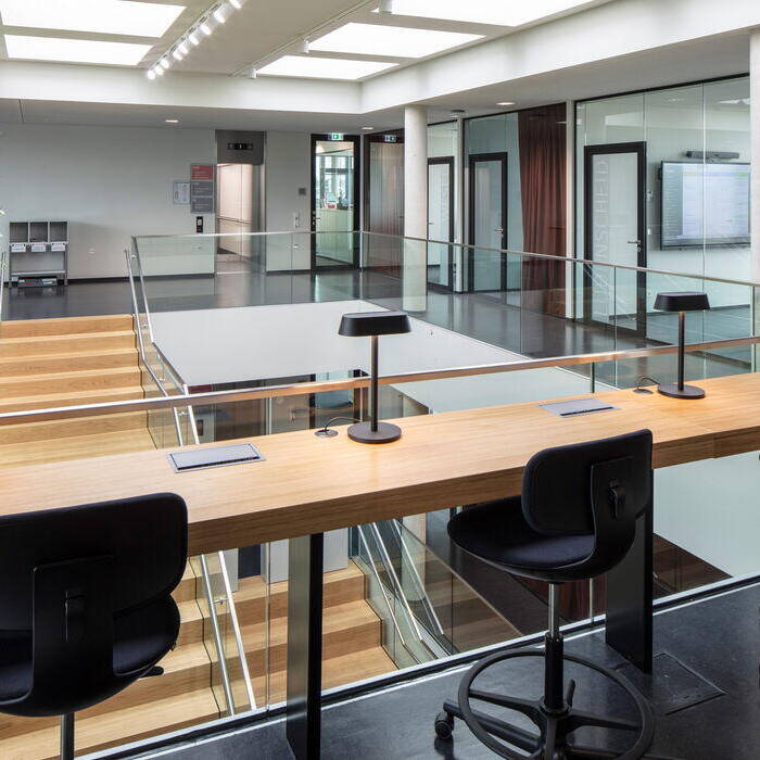 Auf dem Campus der Dortmunder Hauptverwaltung von Rewe befanden sich bereits Bürogebäude und das Logistikzentrum des Handelsunternehmens. Dies sollte um ein neues Bürogebäude erweitert werden, in dem New Work von den rund 140 Mitarbeitenden gelebt werden kann. Um dafür die Basis zu schaffen, führte das mit der Neubaumaßnahme beauftragte Büro RKW Architektur + Niederlassung Dortmund sowie in der Bauphase im Verbund mit den Kollegen aus dem Büro Münster, in Workshops eine Bedarfsanalyse mit den späteren Nutzenden durch. Das Resultat ist ein dreigeschossiges Gebäude mit einem L-förmigen Grundriss und zeitgemäßen Arbeitsumgebungen – wobei das elegant-schwarze Äußere einen maximalen Kontrast zum hellen und offenen Ambiente innen bildet.
