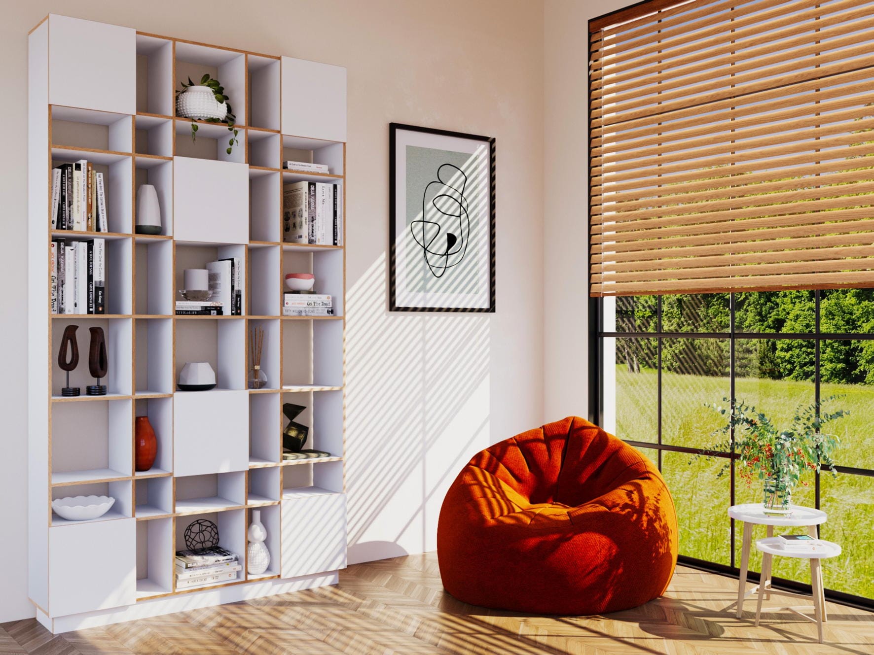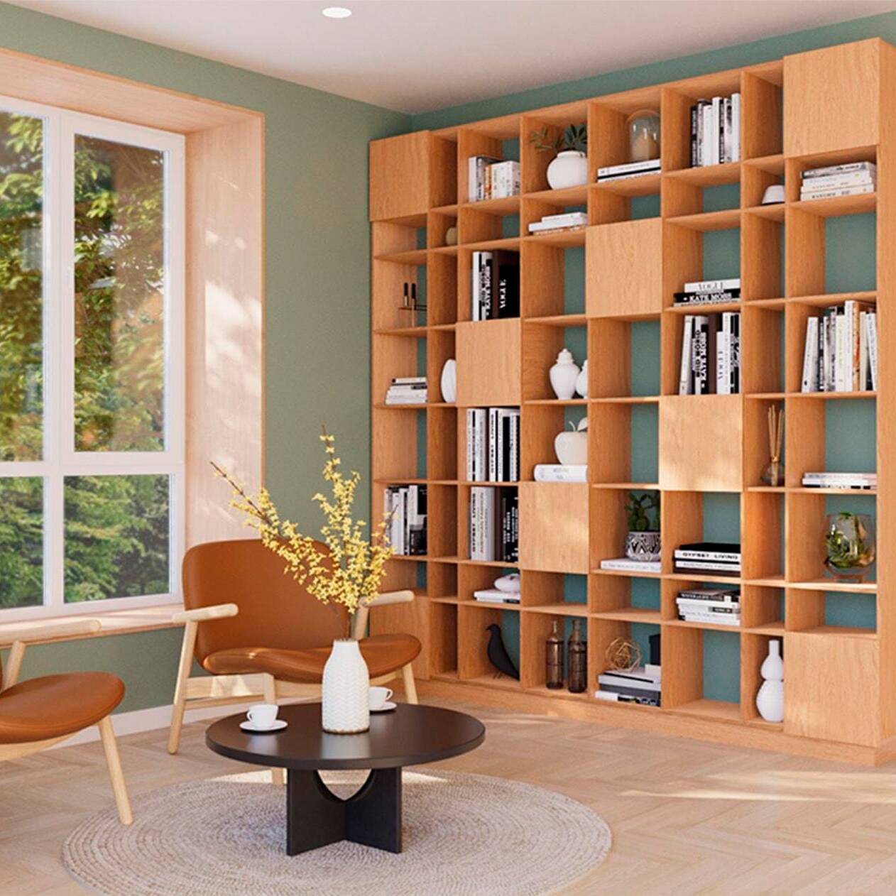 Symmetrie vermittelt in Innenräumen Ordnung, Ruhe und Harmonie. Dieses Prinzip greift das Regal Grid (Design: Raul Abner) auf. Es verfügt über ein symmetrisches und ausgewogenem Design, ist in verschiedenen Größen und nun auch mit Türen erhältlich. Für mehr Gemütlichkeit in Räumen kann es auch als Raumteiler eingesetzt werden. Grid bietet aber auch Stauraum im Büro oder etwa für Schallplatten. Um etwas Charakter hinzuzufügen, ist eines der Regale schmaler gehalten.