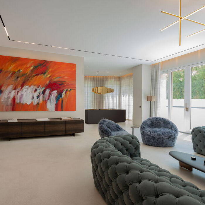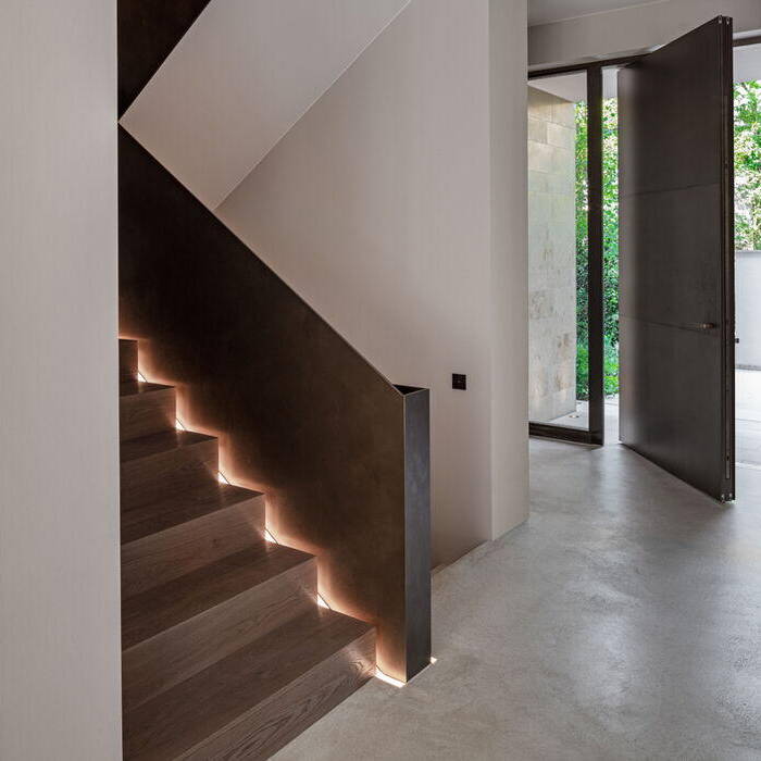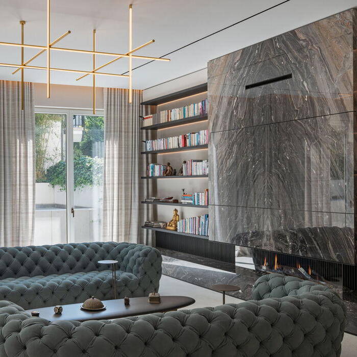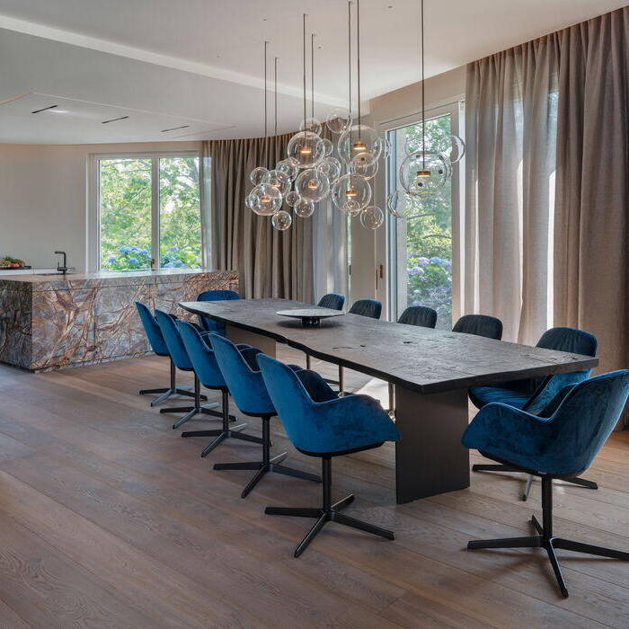 Das Diplomatenviertel in Frankfurt ist für seine prachtvollen Villen, historischen Stadthäuser und exklusiven Neubauten bekannt. Es verdankt seinen Namen den zahlreichen Konsulaten und Botschaften, die sich hier angesiedelt haben. In diesem Umfeld hat das Innenarchitekturbüro Schmidt Holzinger aus Rodgau ein luxuriöses Townhouse für ein Paar geplant und dabei die Visionen der Bewohner:innen zu einem harmonischen Ganzen verwoben, sodass die Wohnung beide Persönlichkeiten und Lebensstile widerspiegelt. Und das bedeutet hier: viel Raum für Gastlichkeit, da die Bewohner:innen in ihrem Zuhause gerne Gäste empfangen, wie beispielsweise bei Dinnerpartys oder Cocktailabenden auf der Dachterrasse.