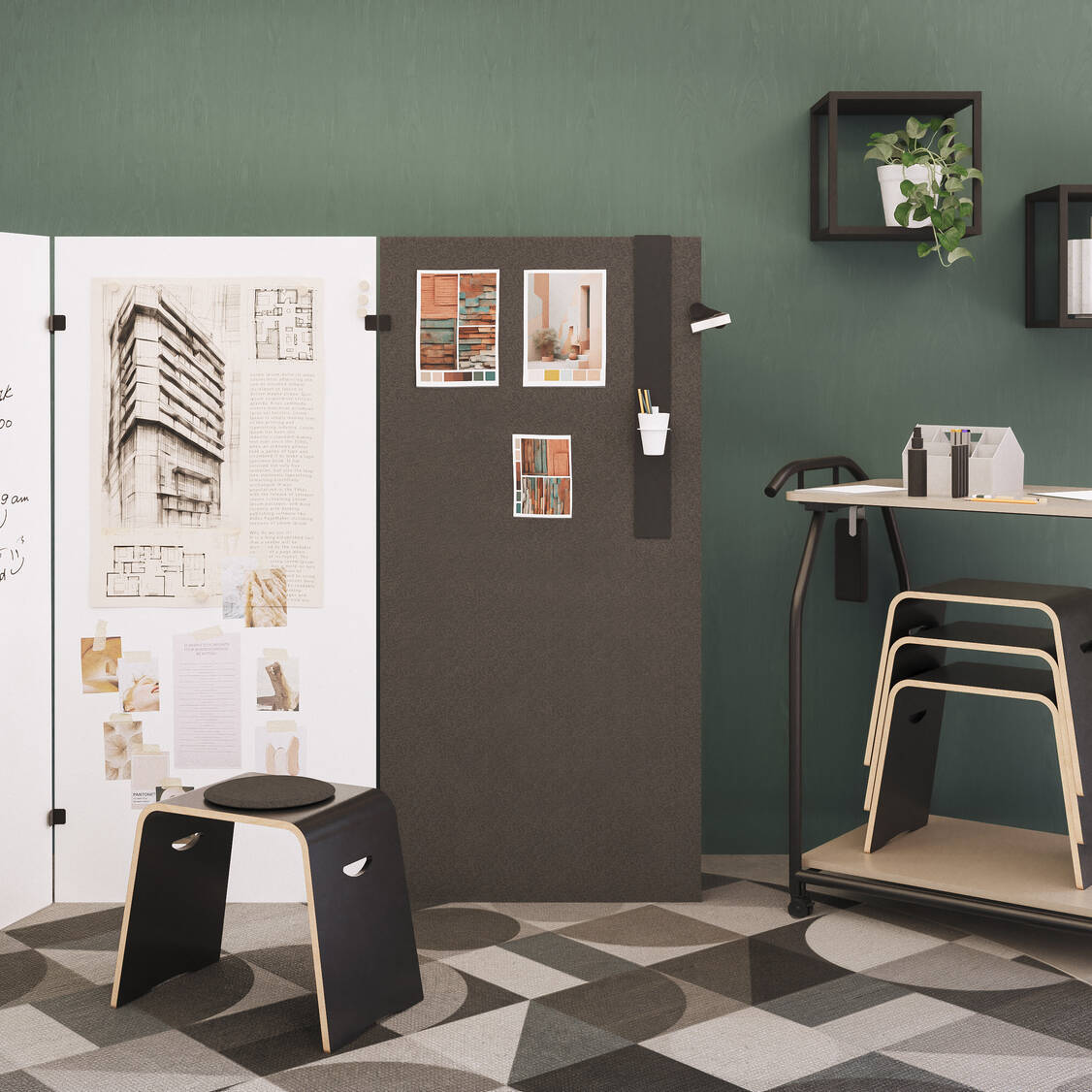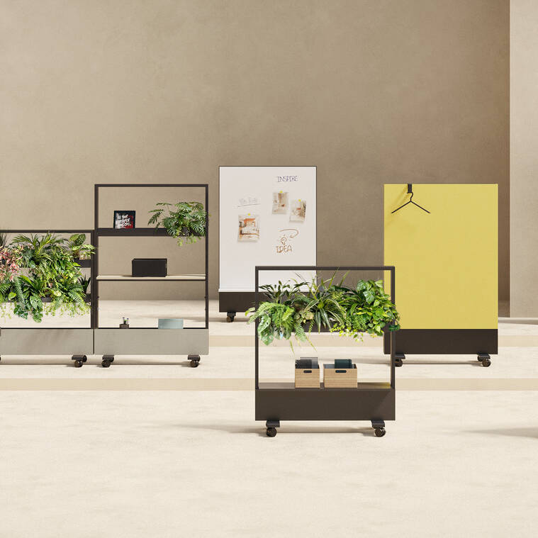 Raum-in-Raum-Lösungen ohne Umbau? Syneo Part Wondawall macht’s möglich. Die mobile Stellwand fungiert je nach Bedarf als Sichtschutz, Whiteboard, Regal, Präsentationsfläche oder als bepflanztes Highlight sogar für den Blick ins Grüne im Office.