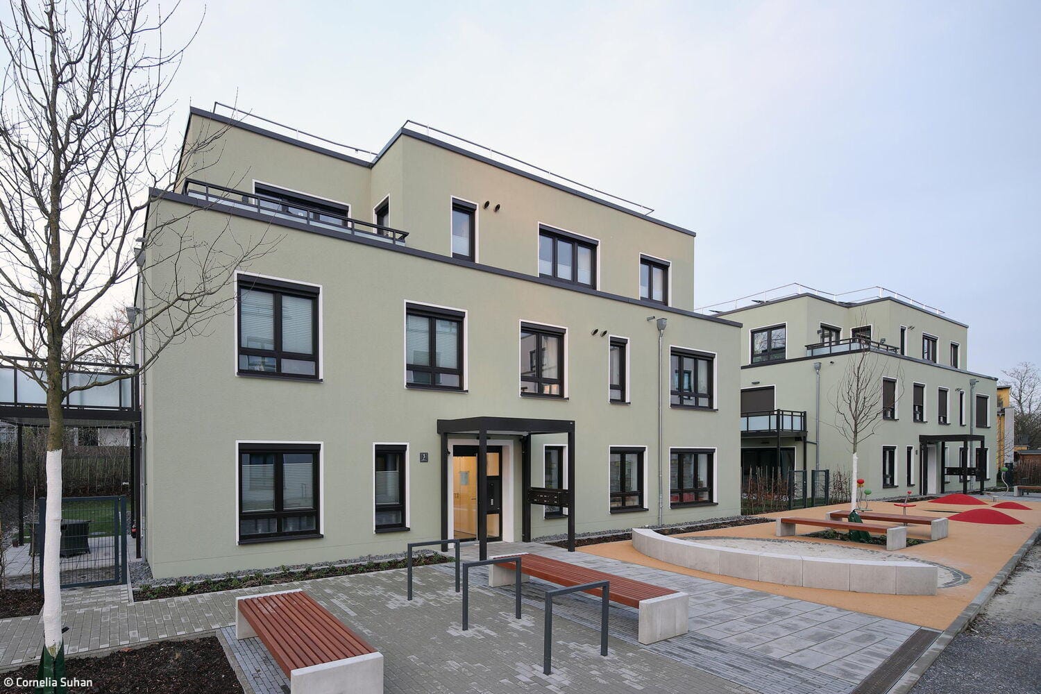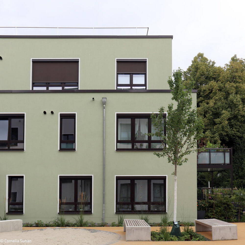 Insgesamt entstanden hier 24 Wohneinheiten, zwölf Appartements und eine eigenständige Wohngemeinschaft im Geschosswohnungsbau. Die Wohnungsgrößen reichen von 45 m² bis 165 m² und erfüllen als Zwei- bis Vierzimmerwohnungen unterschiedliche Bedürfnisse von Singles, Paaren und Familien. Sie bieten individuelle Gestaltungsspielräume sowie bezahlbaren Wohnraum. Zudem ist hier barrierefreies, altersgerechtes sowie Wohnen für Menschen mit körperlichen Einschränkungen und für junge Erwachsene mit geistigen Beeinträchtigungen möglich. Das inklusive Wohnhaus für junge Erwachsene zwischen 18 und 30 Jahren berücksichtigt physiologische und geistige Einschränkungen und steht für gelebte Partizipation im Alltag. Das Konzept ist das Ergebnis eines intensiven Planungsprozesses des Architekturteams in Zusammenarbeit mit der Elterninitiative WiO e.V. und allen Bewohner:innen. Die Elterninitiative „WiO – Wohnen im Ort e.V.“ wurde von 15 Familien als Mieterbaugemeinschaft gegründet. Ihr Anliegen war ein innovatives Wohnmodell, das viel Raum für die Gemeinschaft und hohe Flexibilität ermöglicht. Im Fokus stand zudem die soziale Teilhabe innerhalb der Gesellschaft und im Alltag der jungen Erwachsenen, um ihnen trotz Beeinträchtigungen ein selbstständiges und selbstbestimmtes Leben zu ermöglichen.