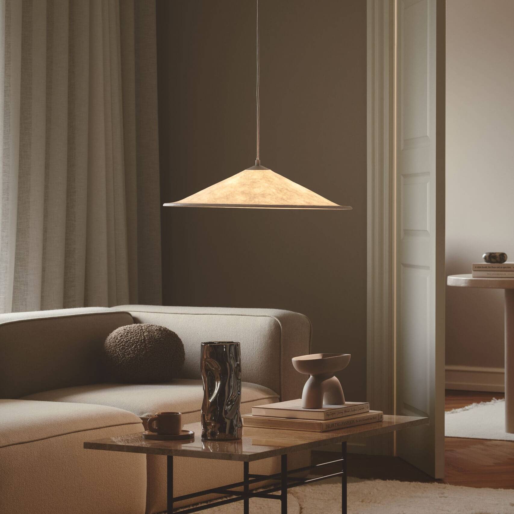 Asger Risborg Jakobsen denkt Gestaltung vom Nutzen her. Der dänische Designer verbindet seine architektonische Ausbildung mit medizinischem Wissen – und schafft damit Leuchten, die sowohl funktional als auch atmosphärisch wirken. „Ich finde Licht faszinierend. Es ist sowohl ein praktisches als auch ein ästhetisches Werkzeug“, erklärt er. Seine Entwürfe entstehen aus der Beobachtung natürlicher Prozesse und folgen einer Logik der Dauerhaftigkeit. Die Pendelleuchte Hill ist ein Beispiel dafür: Sie übersetzt die filigrane Ästhetik japanischer Reispapierlampen in ein langlebiges Objekt aus Tyvek. Ihre großzügige Form bringt sanftes, gleichmäßiges Licht in Besprechungsräume, Lounges oder Gastronomien – ohne dabei den Raum zu dominieren. Für Innenarchitekt*innen bietet Hill eine moderne, dezente Lösung im Japandi-Stil, die zeitlose Klarheit mit materieller Robustheit verbindet.