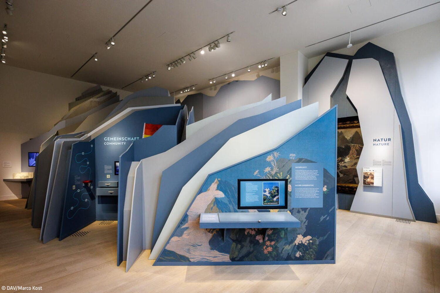 Das erste Obergeschoss wurde für Verwaltungsbüros hinzugewonnen. Im zweiten Obergeschoss liegen die großen Räume für Veranstaltungen und Sonderausstellungen. Beim Umbau wurde eine Deckenvertäfelung aus Holz mit Blumendekor freigelegt und die alten Kronleuchter wieder angebracht. „Wir verstehen das Museum mit Archiv und Bibliothek als unser kulturelles Zentrum“, so der Präsident des DAV Roland Stierle. Die aktuelle Sonderausstellung widmet sich dem Thema Klimawandel, durch den die gesamte Alpenregion extremen Veränderungen ausgesetzt ist und klärt damit über die Notwendigkeit des Schutzes unserer Natur auf. Nachhaltige, natürliche Baumaterialien waren für den Umbau selbstverständlich. Auf eine Klimaanlage wurde vollständig verzichtet, was eine Energieeinsparung von 50 Prozent ermöglicht.