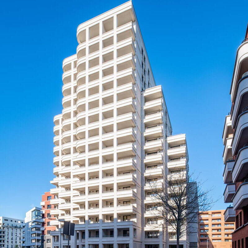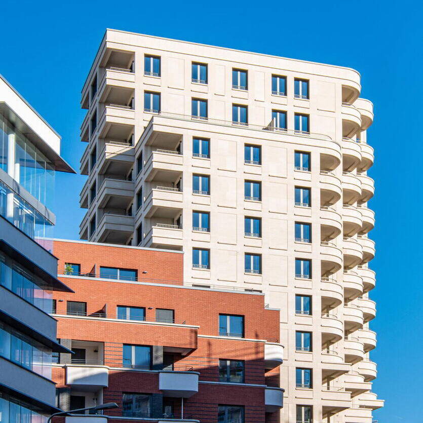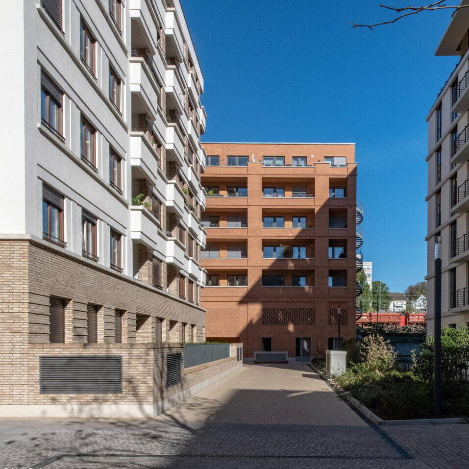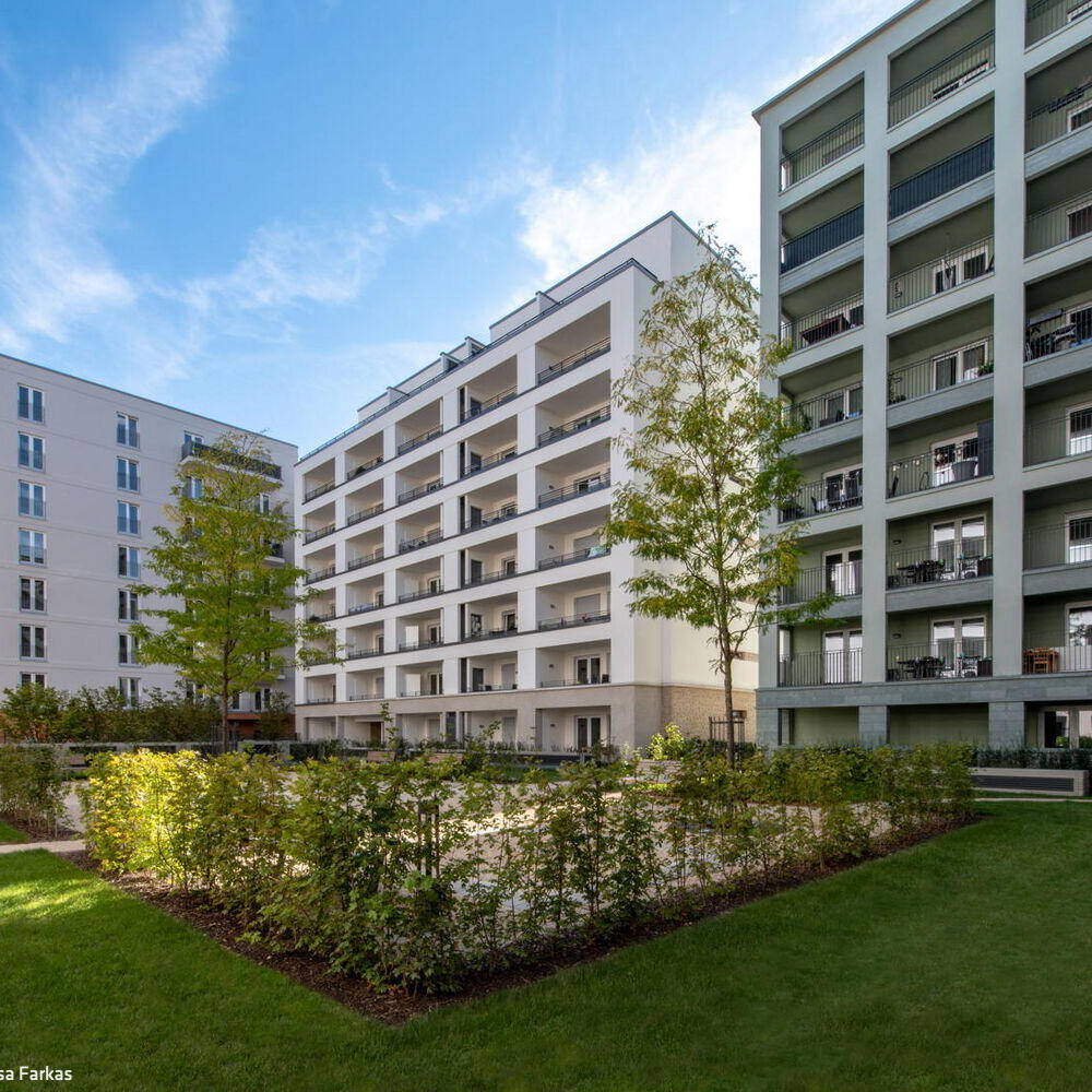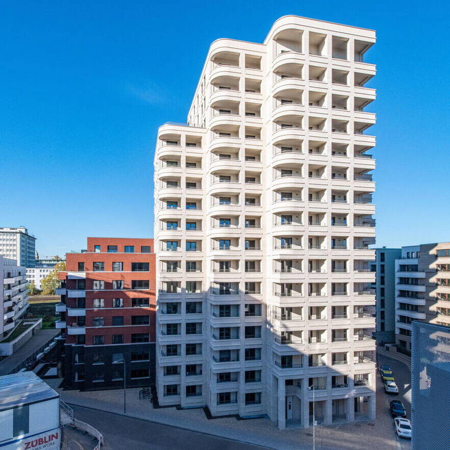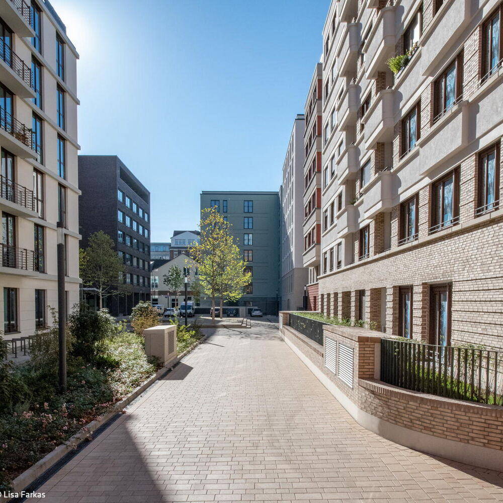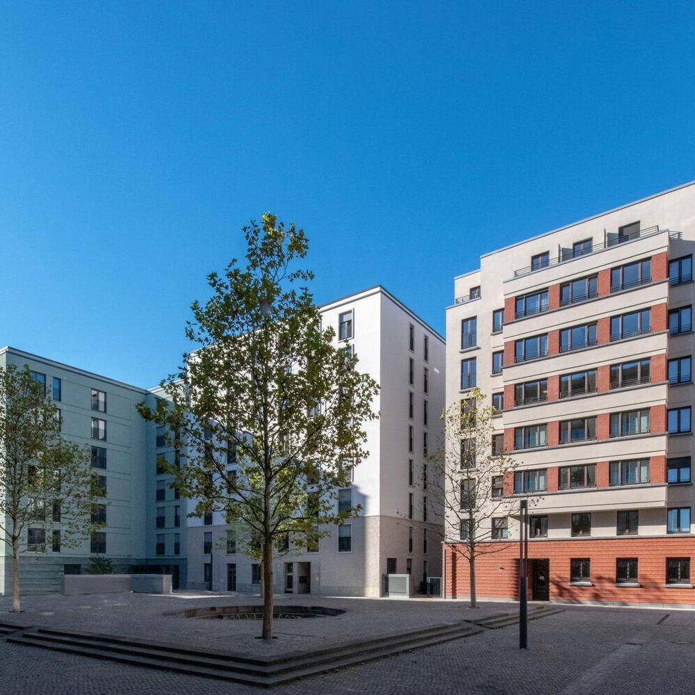 Die rund 400 Wohnungen zeichnen sich durch eine hohe soziale Durchmischung aus: Neben Eigentums- und Mietwohnungen gibt es auch geförderten Wohnraum. Zwei Kitas im Erdgeschoss und großzügige Außenbereiche für die Gemeinschaft unterstreichen den Anspruch eines lebendigen und sozial heterogenen Quartiers.