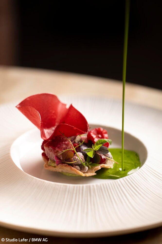 Mit dem „The Cloud by Käfer“ setzt das Münchner Team von BMW Group Designworks gemeinsam mit den Gastronomieexperten von Käfer neue Maßstäbe: Im ehemaligen „EssZimmer“ des Sternekochs Bobby Bräuer schufen sie einen Raum, der mehr ist als nur ein Restaurant. Licht, Materialität und Raumgestaltung verschmelzen hier zu einem Erlebnis und bilden eine perfekte Bühne für Fine Dining. Chefkoch Jens Madsen und sein Team interpretieren unter dem Motto „Culinary Nomadism“ Aromen aus allen Kontinenten neu – mit regionalen Zutaten aus Bayern. In der ersten Saison rückt das Thema Afrika in den Fokus.