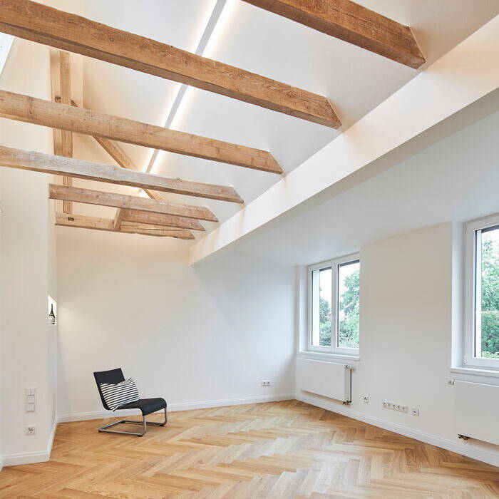 Ein Dachgeschoss in einer Altbauvilla bietet ein grandioses Raumerlebnis