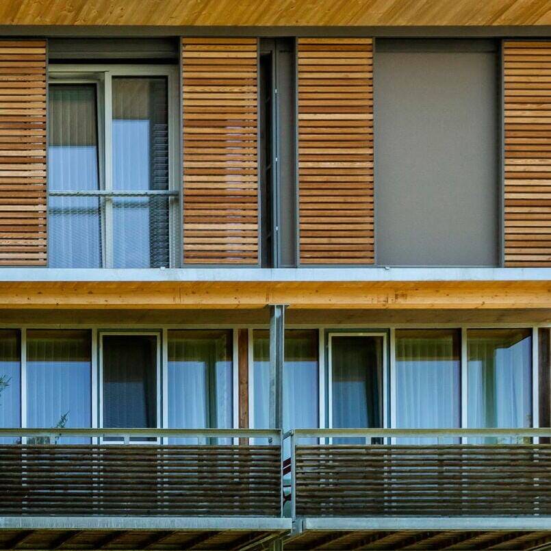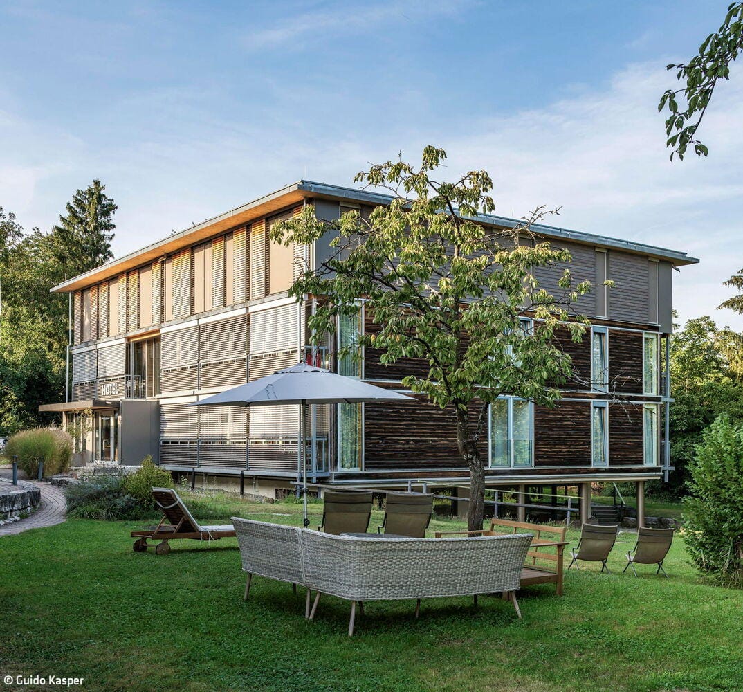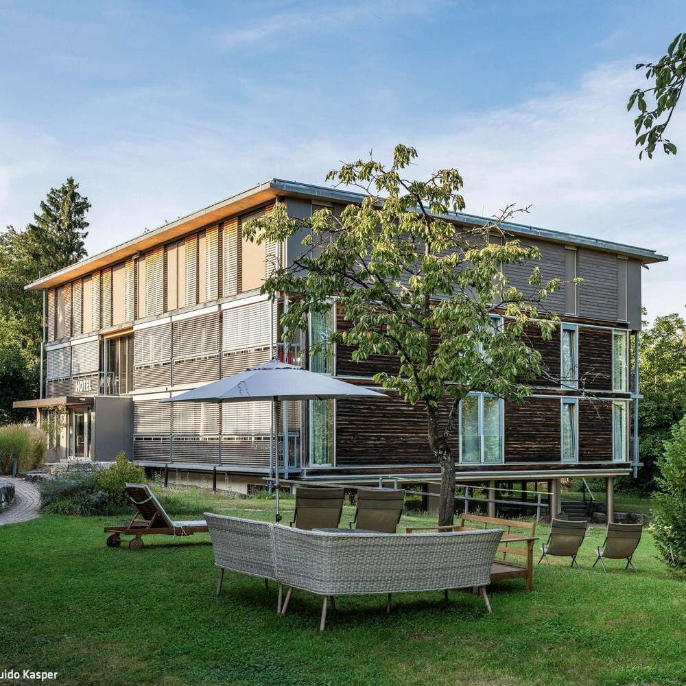 Passend zum Bestand in Holzbauweise aufgestockt, fügt sich das inklusive Hotel und Gasthaus Seehörnle in Gaienhofen-Horn sensibel in das Landschaftsschutzgebiet Bodenseeufer ein. Auf der idyllischen Halbinsel Höri gelegen, bietet das Haus, das viele Wander- und Fahrradtouristen anzieht, auch Menschen mit Behinderung barrierefreie und rollstuhlgerechte Unterkünfte und inklusive Arbeitsplätze.