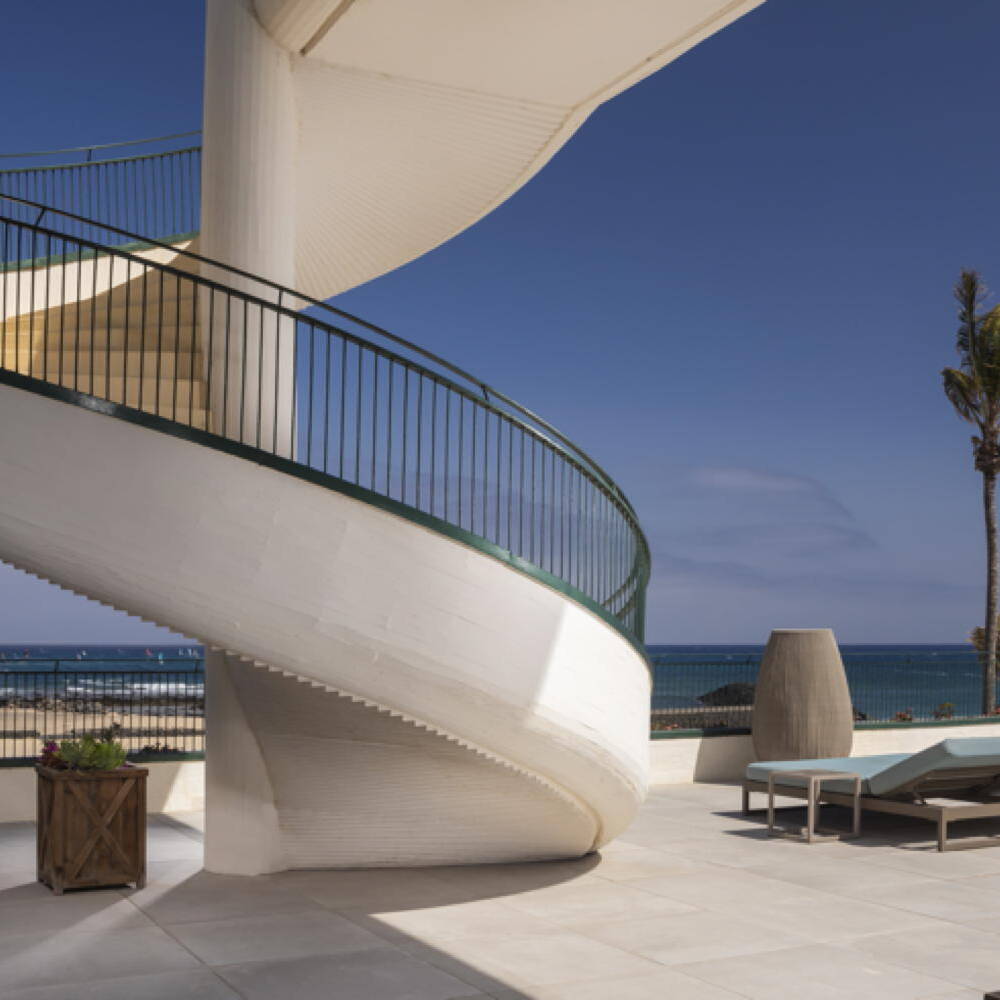 Von der denkmalgeschützten Pooldusche aus Vulkanstein über die kühn geschwungene weiße Freitreppe bis zum tropischen Garten im Inneren: Eingebettet in die einzigartige Vulkanlandschaft Lanzarotes, verbirgt sich an der Costa Teguise ein architektonisches Juwel. Das Meliá Paradisus Salinas Lanzarote. Ein Ort, den es so kein zweites Mal gibt: Umgeben von tropischen Gärten, Salzwasserpools und mit weitem Blick über den Atlantik, wurde das Resort bereits in den 1970ern vom spanischen Architekten Fernando Higueras zusammen mit dem kanarischen Künstler, Naturschützer und Inselgestalter César Manrique entworfen. Unter Denkmalschutz stehend, trägt es bis heute die Handschrift der beiden Visionäre: Die minimalistische, klare Architektur im Beton-brut-Stil verschmilzt mit der von Manrique gestalteten Garten- und Poollandschaft, die Lavaformationen, Naturstein und Palmen in Szene setzt und Lanzarotes einzigartiges Landschaftsbild reflektiert.