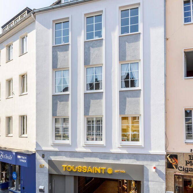 Das Erlebnis Uhr stand beim Interior Konzept für einen neuen Toussaint-Showroom in der Bonner Altstadt im Vordergrund. Er bietet Liebhaber:innen gehobener Zeitmesser ein besonderes Einkaufserlebnis in einer exklusiven Wohlfühlathmosphäre. Den Anstoß für die zweite Niederlassung eines alteingesessenen Uhrenfachgeschäfts gaben Überlegungen zu dessen Umbau: Das bestehende Ladenlokal unmittelbar gegenüber entsprach als langer, recht schmaler Schlauch nicht mehr den Raumanforderungen. Der Fachhändler wollte sich mit dem zweiten Standort spezialisieren und mehr Verkaufsfläche schaffen.