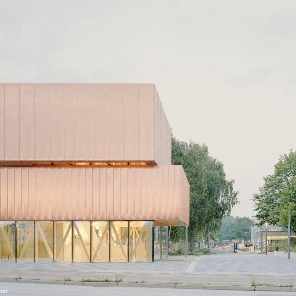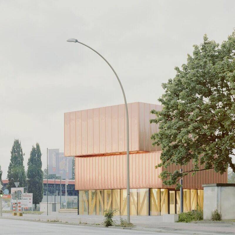 Im Zuge der Entwicklung und Umgestaltung des Firmengeländes der Hamburger Energienetze an der Bramfelder Chaussee wurde die unbefriedigende Eingangssituation durch einen skulpturalen, zeichenhaften Empfangspavillon gestärkt. Ziel war ein angemessener, qualitätsvoller Zugang zum Hauptstandort – weithin sichtbar und leicht zu finden. Der Pavillon, der von Busch & Takasaki Architekten BDA aus Berlin entworfen wurde, erfüllt diese Anforderungen auf verblüffend einfache und unaufgeregte Weise. Die Umsetzung erfolgte durch Gerkan Marg und Partner im Rahmen einer Generalplanerleistung, zusammen mit weiteren Gebäuden, die auf dem neu strukturierten Firmengelände errichtet werden.