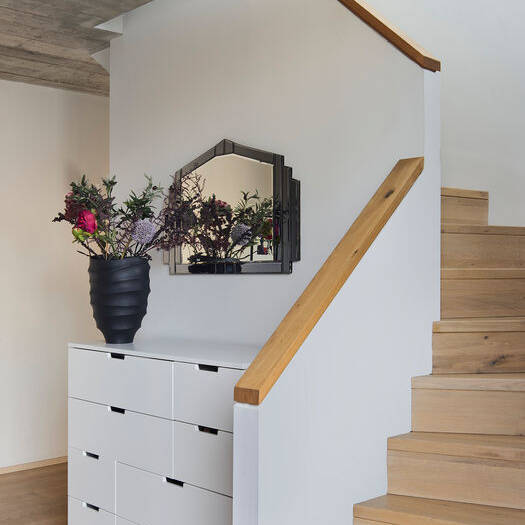 Schon länger hatten die Bauherren nach einem Wohnhaus für die vierköpfige Familie gesucht. Am Ende war es wie so oft der Zufall, der der Architektin Laura Schommer-Wolstein vom Bonner Architekturbüro Schommer das Nachbarhaus ihres eigenen Elternhauses in die Hände spielte: Das überschaubare eingeschossige Satteldachhaus aus den 1960er-Jahren bot nicht nur genügend Umbaupotential – aufgrund des relativ großen Abstands zum Nachbarhaus ließ es sich auch so erweitern, dass ein zeitgemäßes offenes Wohnen mit durchgehender Anbindung an den Außenraum möglich wird.