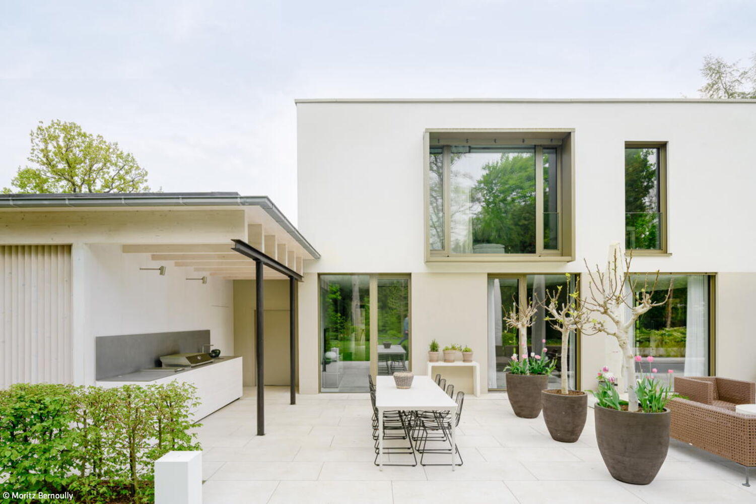 Es begann mit einem klaren Wunsch: Raus aus der Wohnung, rein ins Leben. Eine junge Familie träumte von Licht, Luft und Weite – und davon, ein neues Kapitel aufzuschlagen. Sie wünschten sich ein Haus, das offen und einladend ist, mit fließenden Übergängen zwischen Innen und Außen und maximal zwei Geschossen. Einen Ort, an dem die Kinder aufwachsen, Freunde empfangen werden, Rückzug und Begegnung gleichermaßen stattfinden können. „Wir fühlen uns ausgesprochen wohl in diesem Haus, nachdem wir vorher in einer Wohnung gewohnt hatten – das war schon eine Umstellung“, sagen die Bauherren heute.