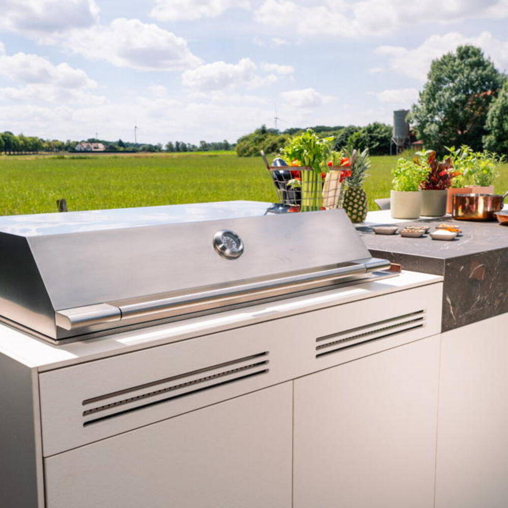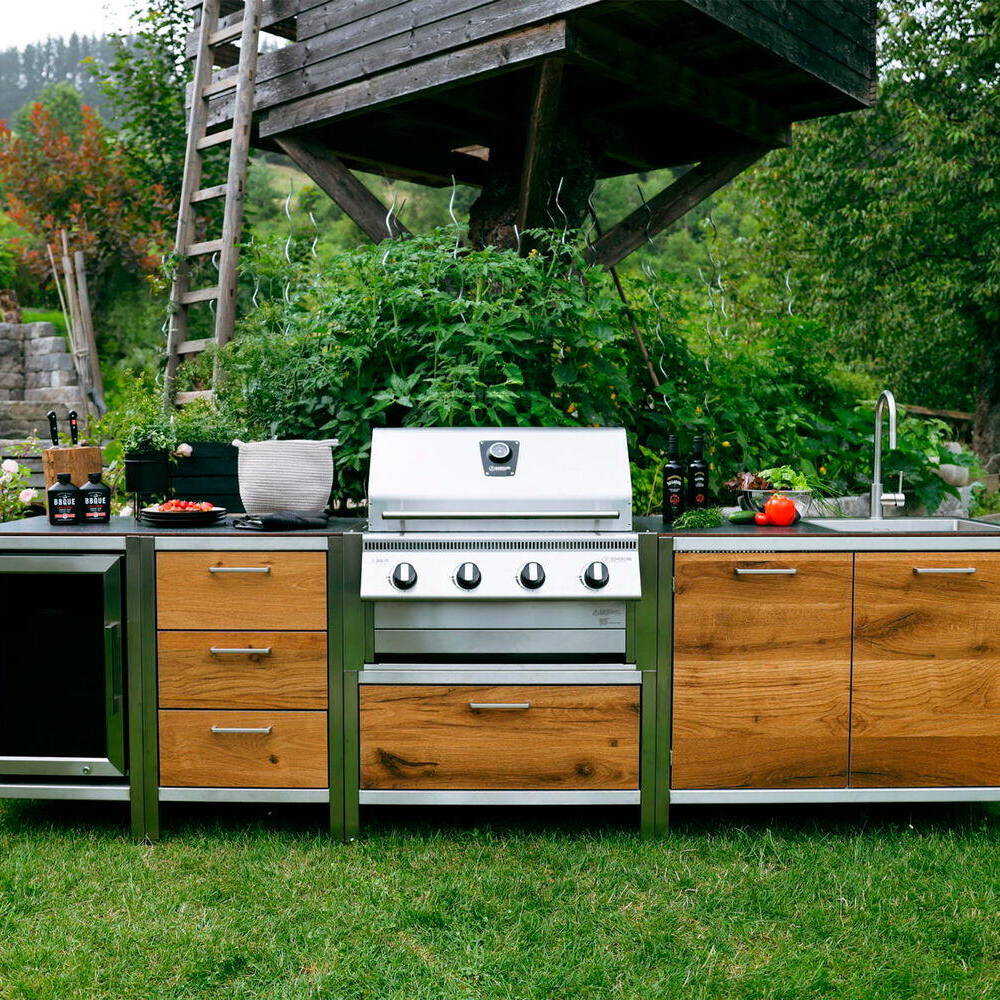 Jedes Stück ein Unikat – das sind die grillMODUL Outdoorküchen aus Todtenweis, Bayern: Alle Module werden von Hand aus hochwertigen, wetterbeständigen Materialien wie sibirischer Lärche und Naturstein hergestellt, was für außergewöhnliche Langlebigkeit sorgt. Zusätzlich pflanzt das Unternehmen für jede verkaufte Küche einen Baum. Alle denk- und fertigbaren Sonderlösungen gibt es auch vom Küchenprofi WM Küchen + Ideen mit Hauptsitz im fränkischen Frammersbach, die in sieben Showrooms in Bayern und Hessen live erlebt werden können. Beim Frontmaterial handelt es sich um hochwertiges Vollkernmaterial aus dem Fassadenbau – womit normalerweise Gebäude verkleidet werden. Es erfüllt höchstmögliche Ansprüche bezüglich UV-Strahlung und Witterungsbeständigkeit. Exklusive Materialien stehen auch bei der Freiluft Manufaktur aus Nordwalde im Fokus: Marine-Aluminium, Naturstein und massiven Eichenholz vereinen sich zu einem langlebigen Gesamtbild. Besonderes Highlight: Das offene Grill-Feuer.
