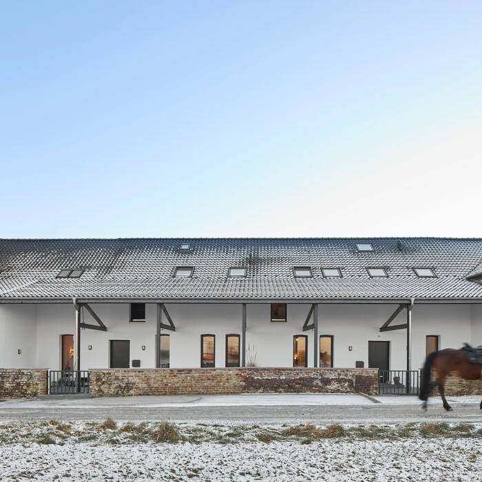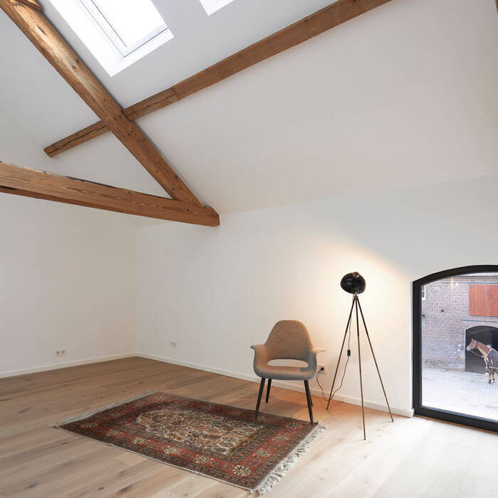 Aufgrund neuer Vorgaben zur artgerechten Tierhaltung an die Größe von Ställen konnten die historischen Pferdestallungen in einer denkmalgeschützten dreiflügeligen Hofanlage nicht länger weitergenutzt werden. Die Eigentümerin wollte sie deshalb in Wohnraum umwandeln, wobei gleichzeitig die alte Bausubstanz saniert werden sollte. Dem beauftragten Büro engels architektur aus Düsseldorf lag besonders daran, die traditionelle äußere Hülle und Tragstruktur weitgehend unverändert zu belassen, während im Inneren ein großzügiges Raumgefühl mit viel Tageslicht geschaffen wurde.