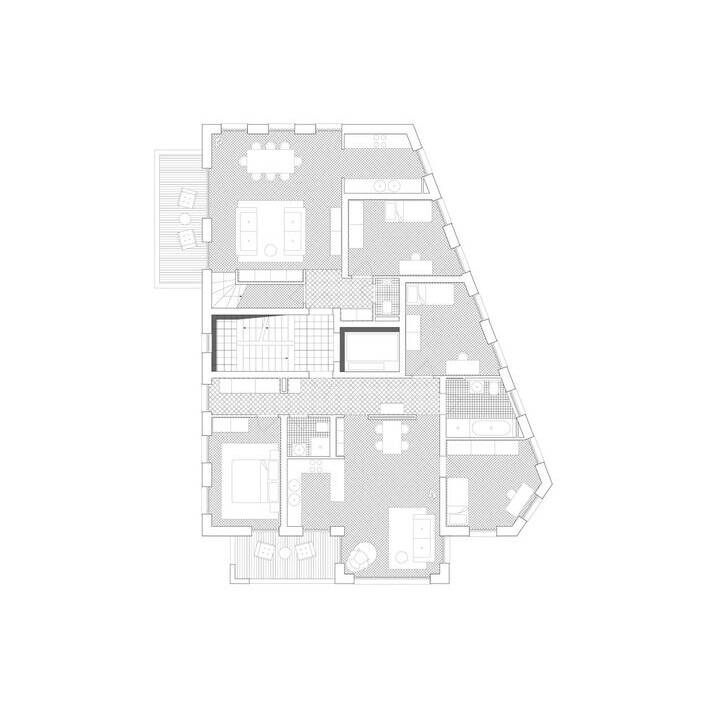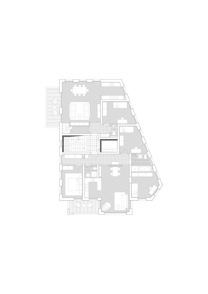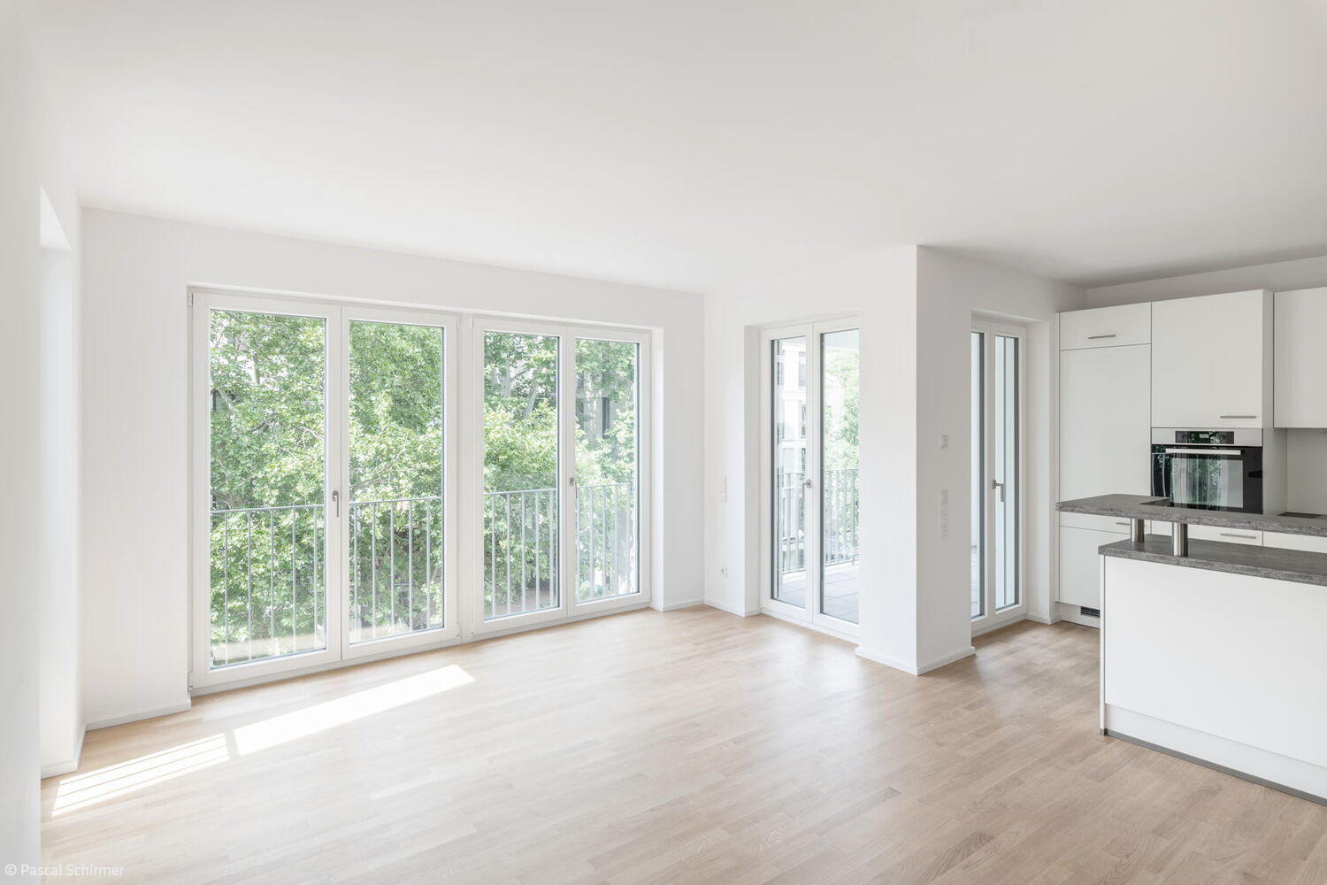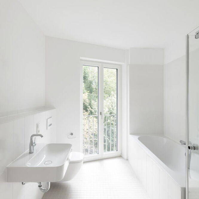 Der Neubau ist auch ein Beispiel dafür, wie Architektur sozialen und kulturellen Mehrwert schafft, wenn sie auf Haltung und Handwerk statt auf Rendite setzt. Denn hier wurde nicht spekuliert, sondern mit dem Ziel gestaltet: hochwertigen Wohnraum zur Miete zu schaffen – wirtschaftlich, aber nicht gewinnmaximierend. Acht Wohneinheiten, zwei davon als Maisonetten, sind entstanden. Insgesamt 946 m² Wohnfläche, verteilt auf fünf Vollgeschosse und ein Dachgeschoss. Darunter: eine Tiefgarage mit acht Stellplätzen.