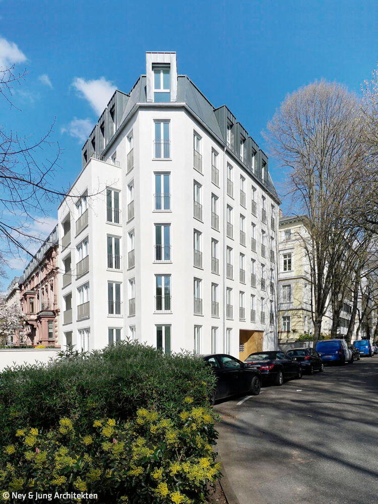 Der Neubau, der für die Hubertus Wald Stiftung aus Hamburg von Ney & Jung Architekten aus Bingen geplant wurde, markiert mehr als eine städtebauliche Korrektur. Er antwortet auf den umgebenden Kontext – historisch und baulich. Dabei war der Weg dorthin nicht ganz einfach. Im Dialog mit der Bauaufsicht und der Denkmalschutzbehörde wurde intensiv verhandelt. Das Ziel: ein Baukörper, der sich in die ursprüngliche Blockrandstruktur der Gründerzeit einfügt, das historische Stadtbild respektiert – und dennoch ein klares architektonisches Statement setzt. Kein lautes, sondern ein selbstbewusstes. Der Bau nimmt die Fluchten der Nachbarhäuser wieder auf, arrondiert das Grundstück und interpretiert die typologische Eckausbildung der Gründerzeit neu – als präzise Fase anstatt einer scharfen Ecke, denn im Gegensatz zur Kante, stellt eine Fase eine durch Abkanten entstandene schmale Fläche dar. Auch das Materialkonzept folgt diesem Gedanken: mineralisch, langlebig, ehrlich. Das massive Ziegelmauerwerk aus Wärmedämmziegeln macht Kunststoff überflüssig und ermöglicht die Ausführung eines hochwertigen Edelkratzputzes. Fenster und Türen sind aus Holz, formal abgestimmt auf die Umgebung, präzise in Fassade und Geschossigkeit eingebunden – kein Element entstand zufällig. Innen dominieren Eichenparkett, helle Fliesen und weiße Wände. Die Wohnungen bieten Bühne statt Kulisse – der Mensch soll sie sich aneignen, nicht umgekehrt.