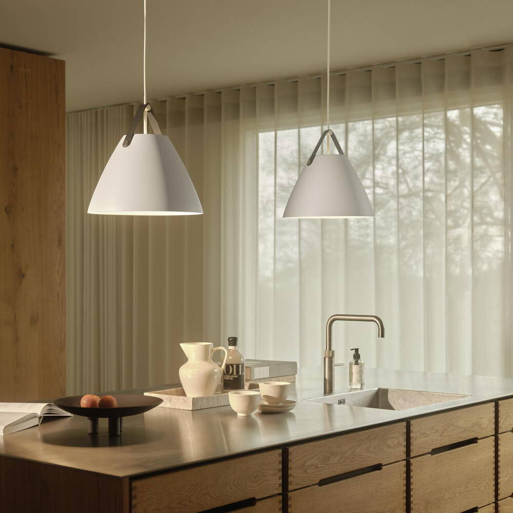 Praxisbeispiele: Die filigrane Darci fokussiert dank schwenkbarem Kopf Leselicht; Arcello setzt als kabellose Tischleuchte flexible Akzente in Lounge-Zonen. Strap bringt mit Lederbügel haptische Wärme in Bars und Restaurants, Kinto wirft über Kücheninseln einen gezielten Lichtkegel und akzentuiert zugleich die Decke.