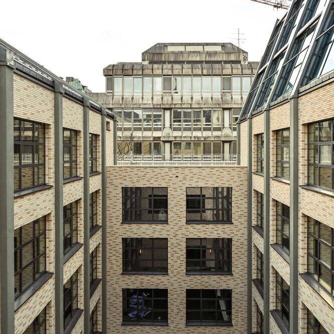 In zentraler Lage, in unmittelbarer Nähe des Hauptbahnhofs, entstand ein neues Bürogebäude auf einem anspruchsvollen Innenhof-Grundstück. Bei einem Wettbewerb hatten Brückner Architekten aus München den ersten Platz erlangt. Ihr Entwurf zeichnet sich dadurch aus, dass er vier Baukörper und drei Lichthöfe auf einem nur 2.500 m² großen Grundstück vorsieht. Die Realisierung des Bauvorhabens umfasste fünf Jahre von 2019–2024.