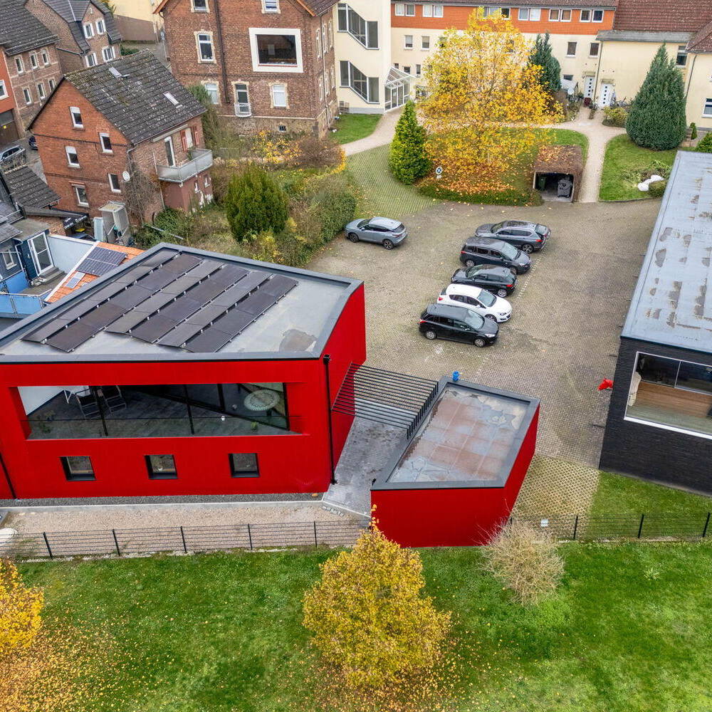 Dass gelungene Architektur auch dort entstehen kann, wo die meisten Bauherren oder Bauträger kein Potenzial für einen Hausbau sehen, zeigt ein Neubau bei Gießen. In Wißmar, neben einem ebenfalls vom Architekten Gerhard Schymik geplanten schwarzen Holzhaus (Objektbericht in der CUBE 4/2022), erhebt sich nun ein weiterer Neubau: ein rotes Einfamilienhaus, das sich nicht nur durch seine Farbgebung, sondern auch durch seine Gestaltung von der konventionellen Bauweise abhebt.