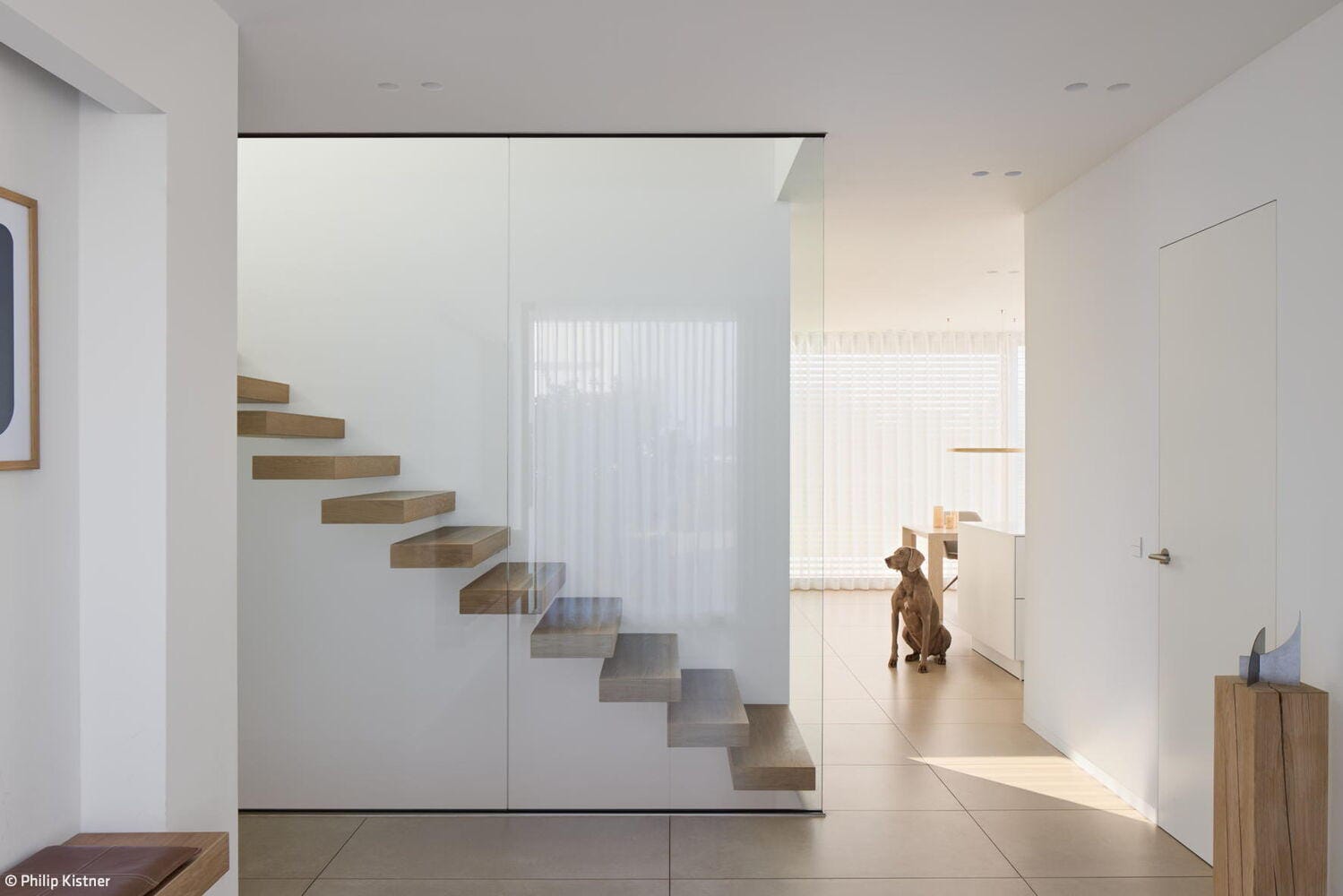 Über einige Jahre stand der Architekt Benjamin von Pidoll schon im Austausch mit der Bauherrschaft, beriet intensiv bei der Suche nach dem passenden Grundstück. Nach dem Kauf eines Eckgrundstückes im Kölner Westen wurde das Architekturbüro mit der Planung des großzügigen Einfamilienhauses beauftragt. Ein klarer, bis in die Details hinein konsequenter Gestaltungsansatz zieht sich dabei durch das gesamte Projekt – zurückhaltend reduziert, hochwertig in den Materialien und mit Referenz an einen Klassiker der Architekturmoderne.
