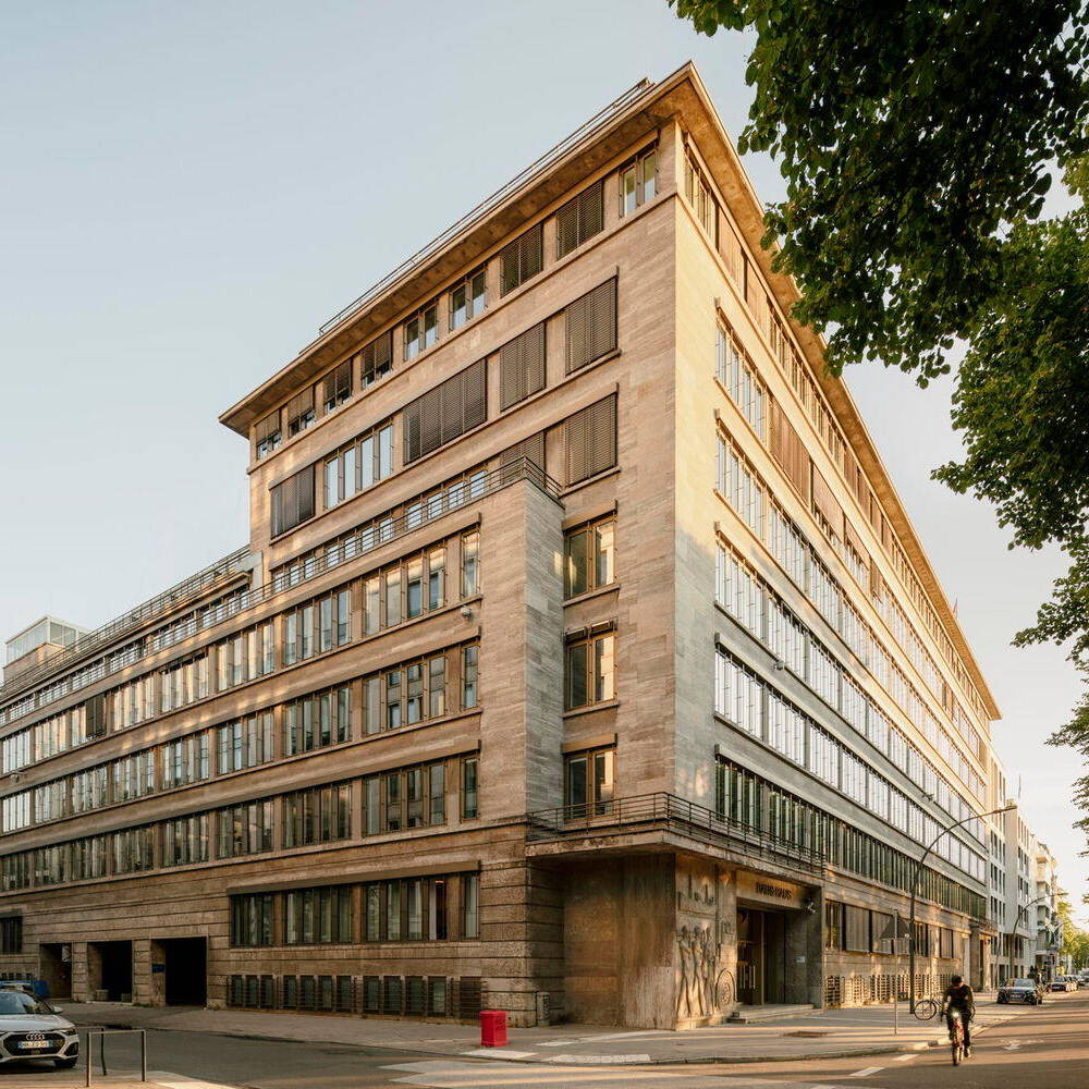 Bereits im Jahr 2009 hatte das Architekturbüro Ratschko eine Anpassung der Gestaltung der Büros realisiert, dabei war aber die Struktur der Zellenbüros und Korridore nicht verändert worden. Der Konzern beauftragte dann im Frühjahr 2022 mehrere Büros mit einer Studie zum Um- und Ausbau des Stammhauses im Rahmen der kulturellen und strategischen Transformation des Unternehmens. Der Entwurfsansatz, mit dem das Büro Ratschko den Zuschlag erhielt, war einfach: Alles Überflüssige weg, alles Notwendige und Nützliche behalten. Die Studie des Büros kam zu dem Schluss, dass eine Modernisierung nachhaltiger, schneller und kostengünstiger ist als ein Umzug in einen Neubau – und auch ein Beitrag zur Stärkung der Identität durch den traditionsreichen Standort. Alle Etagen wurden fast vollständig auf den Rohzustand zurückgebaut, Brandabschnitte und Schleusen neu geordnet und die Haustechnik komplett erneuert. Das Ergebnis sind weitläufige, zusammenhängende Flächen mit Durchblicken über alle Achsen des Gebäudes auf insgesamt 8.500 m² Fläche. Die Neugestaltung der Arbeitswelt folgt dem „Activity Based Working“-Prinzip: flexible Büroflächen, Teamarbeitsräume, Telefonboxen, Konzentrationsarbeitsplätze, Sitzgruppen und gemütliche Alkoven – alles über kurze Laufwege erreichbar. Eine Gemeinschaftsküche und ein repräsentativer „Familientisch“ sind die ideelle Mitte jeder Etage.