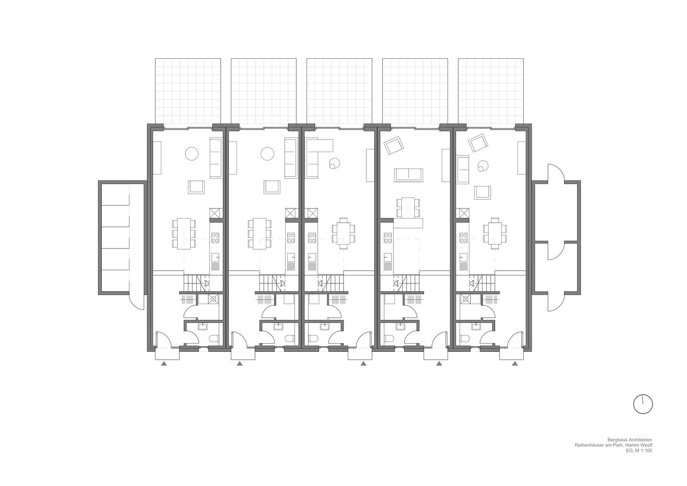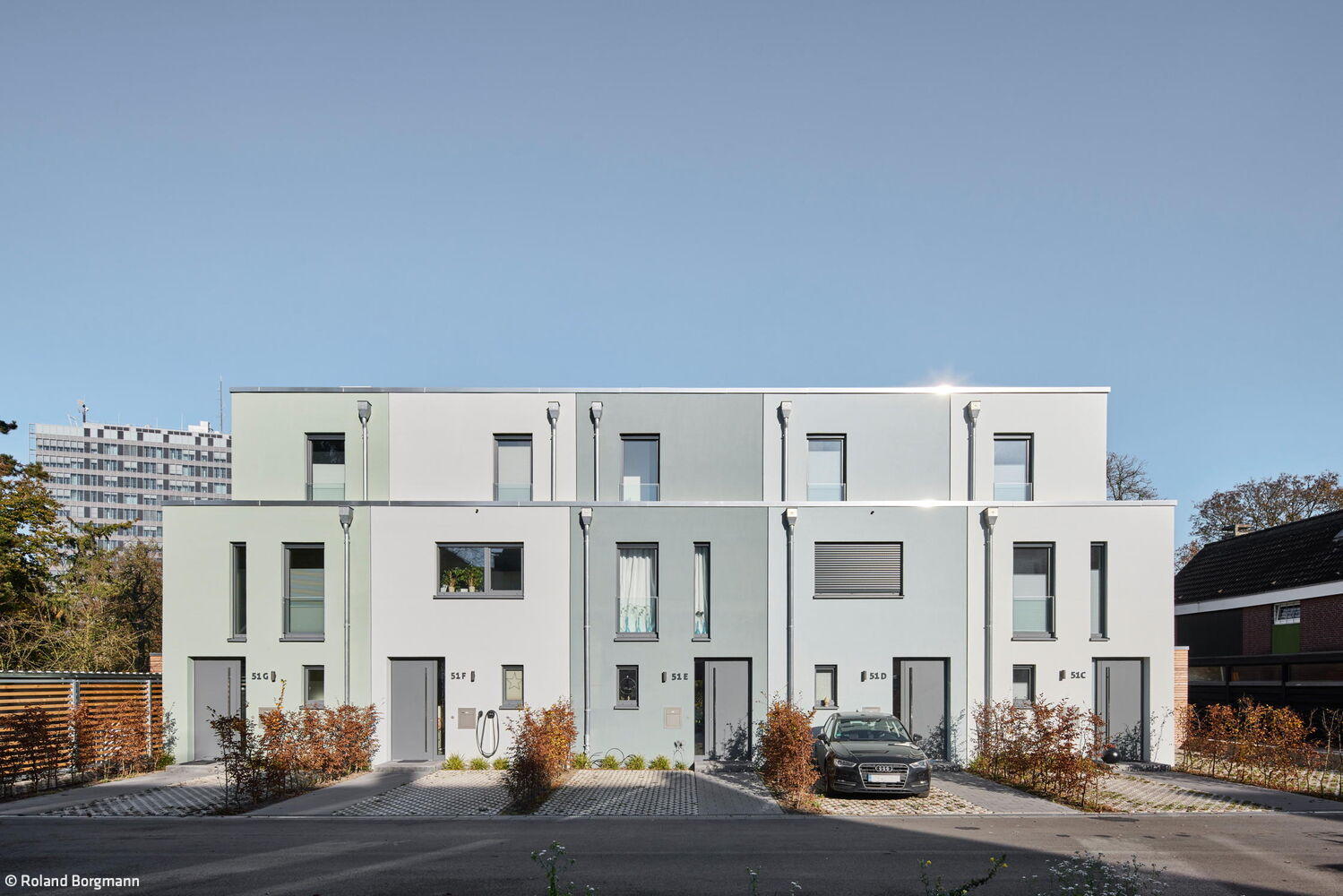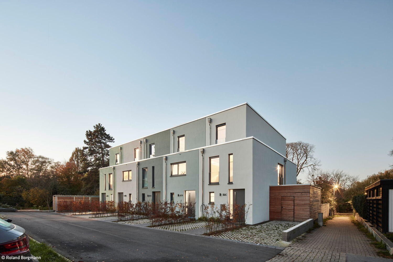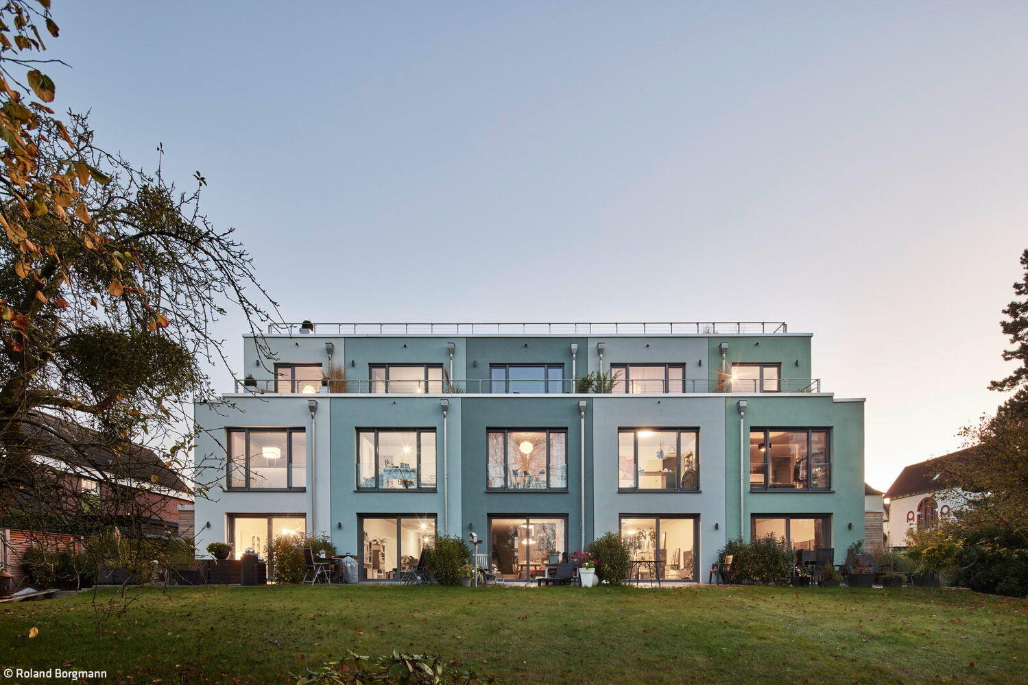 Für Jens Berghaus war es eine Premiere, zugleich Architekt und Bauherr zu sein. Der Zufall ergänzte die Geschichte: Das Grundstück, auf dem fünf Reihenhäuser mit Blick auf den Ahseteich entstanden, schlummerte davor jahrzehntelang hinter Garagen verborgen vor sich hin. Das Hammer Architekturbüro zog die ruhige und zugleich zentrale Lage in zweiter Reihe – erreichbar über einen Privatweg – an und plante dort Wohnbebauung, die schließlich realisiert wurde.