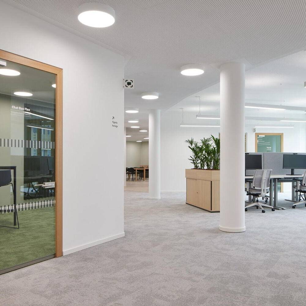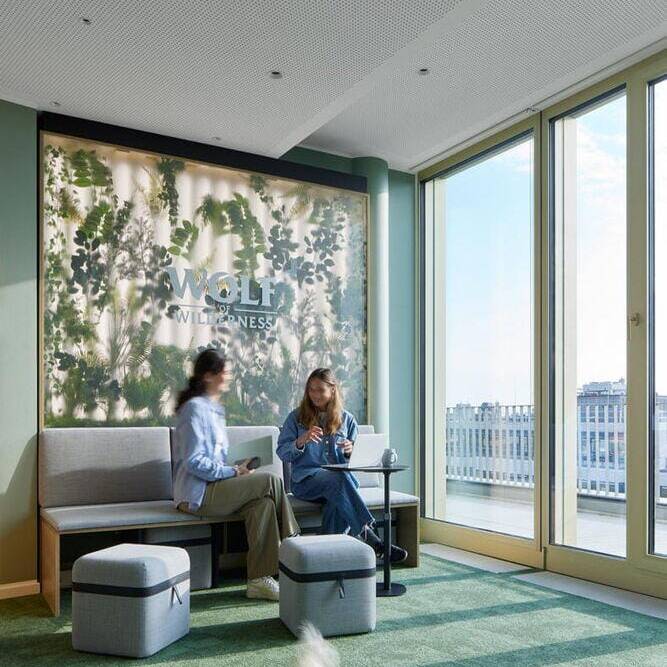 Hier ist alles „Wau“: Mitten im Herzen Münchens hat der Onlinehändler für Heimtierbedarf zooplus Anfang 2025 sein neues Headquarter bezogen – das „Lumen“ an der Herzog-Wilhelm Straße. Das Besondere: Hier wird nicht nur modernes Arbeiten ermöglicht. Design und Innenarchitektur übersetzen die Markenidentität von zooplus – Pet Love Everyday – in eine ansprechende, funktionale und tierfreundliche Raumlandschaft. Auf rund 12.300 m² Bruttogrundfläche schuf das Beratungsunternehmen combine Consulting unter anderem in Zusammenarbeit mit S+W BüroRaumKultur einen Arbeitsort, der die besondere Beziehung zum Haustier in den Mittelpunkt stellt: Hunde gehören im Büro selbstverständlich dazu.