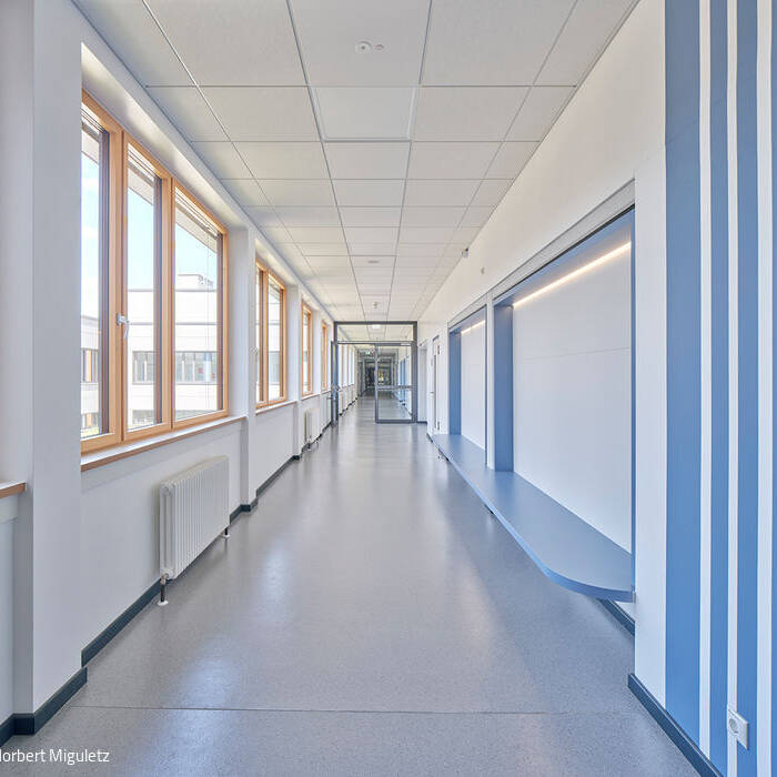 Ein dezidiertes Konzept für Gebäudetechnik sorgt durch aktive Be- und Entlüftung mit Wärmerückgewinnung für eine hohe Luftqualität in den Klassenräumen (konstante, frische Luftzufuhr), was sich positiv auf die Gesundheit und das Lernumfeld auswirkt. Doch das Konzept bringt auch nachhaltige und ökologische Vorteile mit sich: Die Wärmerückgewinnung ermöglicht es, die Wärmeenergie aus der Abluft zu nutzen und in die Frischluftzufuhr zurückzuführen, wodurch der Energieverbrauch erheblich reduziert wird. Dies trägt zur Senkung der Heizkosten bei und verringert auch den ökologischen Fußabdruck sowie den CO₂-Ausstoß der Schule.